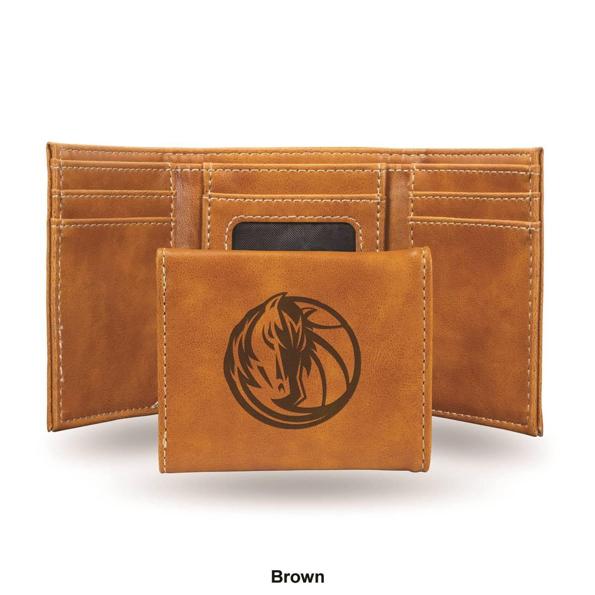 Carry a part of your favorite team with you and simultaneously keep your money safe with this Mens NBA Dallas Mavericks trifold wallet. Made of faux leather, the 4-inch long and 3.25-inch wide wallet features a Dallas Mavericks embossed logo, card slots, and an ID window for a complete look.