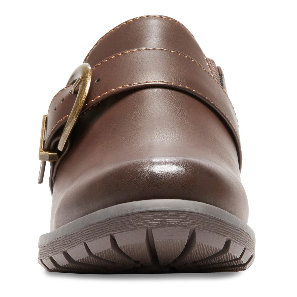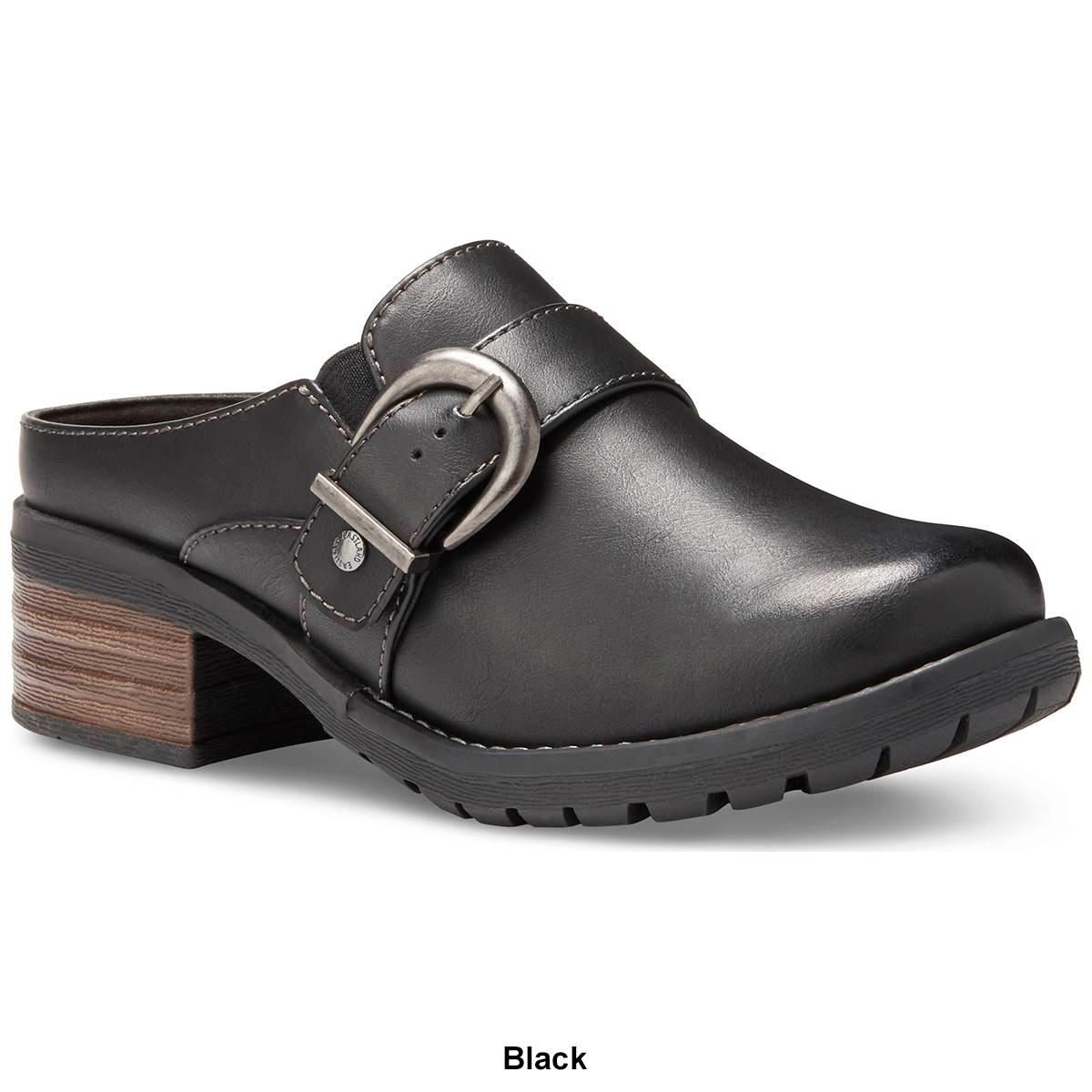 Description These Womens Eastland Erin strap and buckle clog pairs perfectly with breezy skirts and your favorite jeans. Featuring a synthetic upper with fabric lining and...