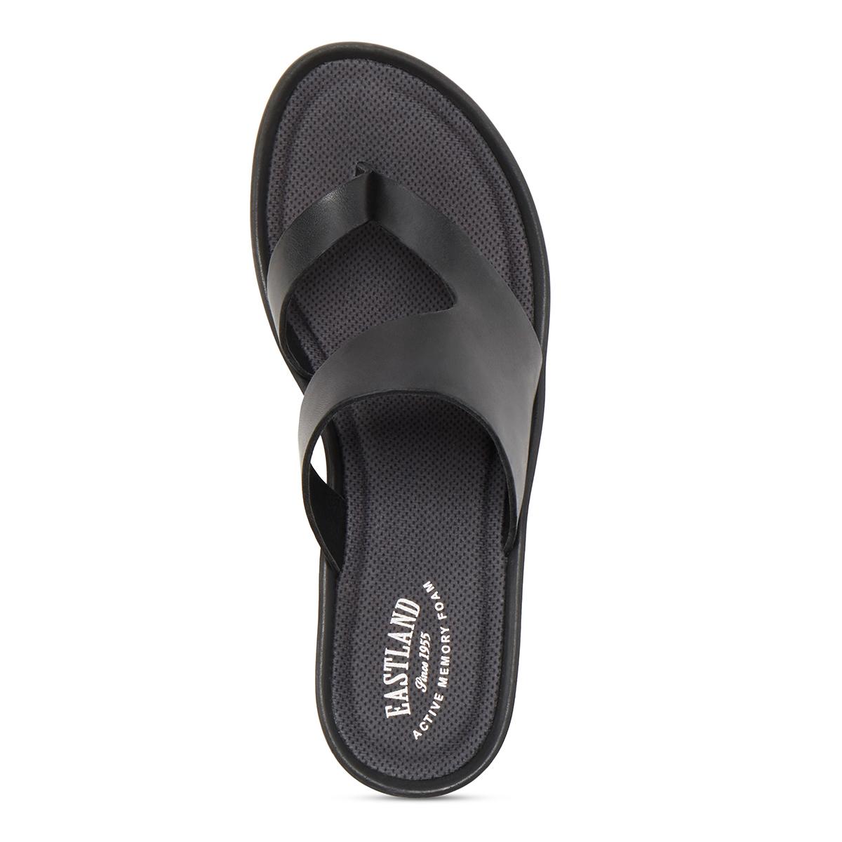 A just-right wedge and seamless straps add casual elegance to these Womens Eastland Laurel flip flops. Featuring full-grain leather straps with exclusive Active Memory Foam comfort insole supports and conforms to the curves of your foot. Shock absorbing Polyurethane outsole offers lightweight durability and traction.