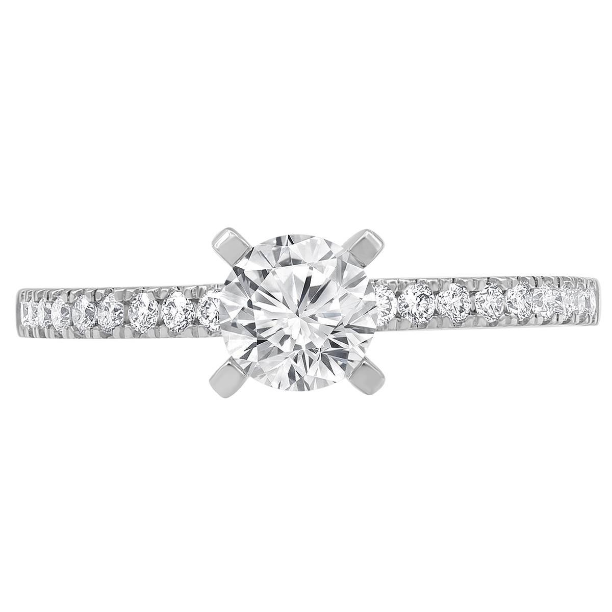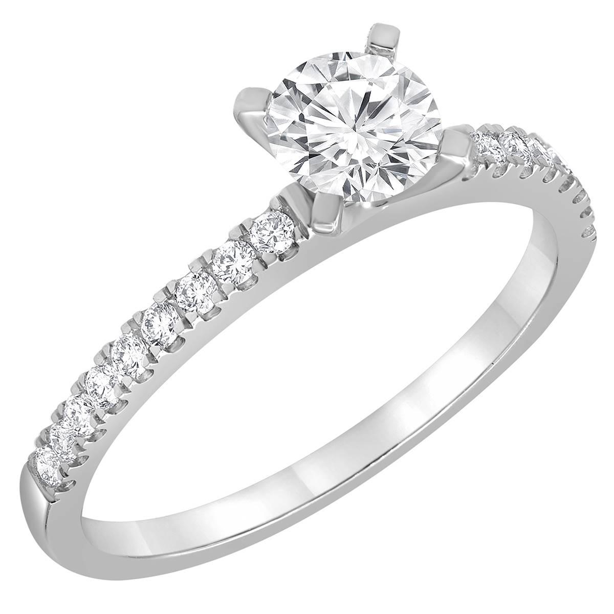Simply glamorous, this Diamond Classics™ lab grown diamond engagement ring makes your proposal a true wow moment. Fashioned in 14kt. white gold, this stunning design showcases a 3/4 ctw. lab grown diamond sparkling atop a diamond-lined shank. Captivating with 1 ctw. of lab grown diamonds and a bright polished shine.