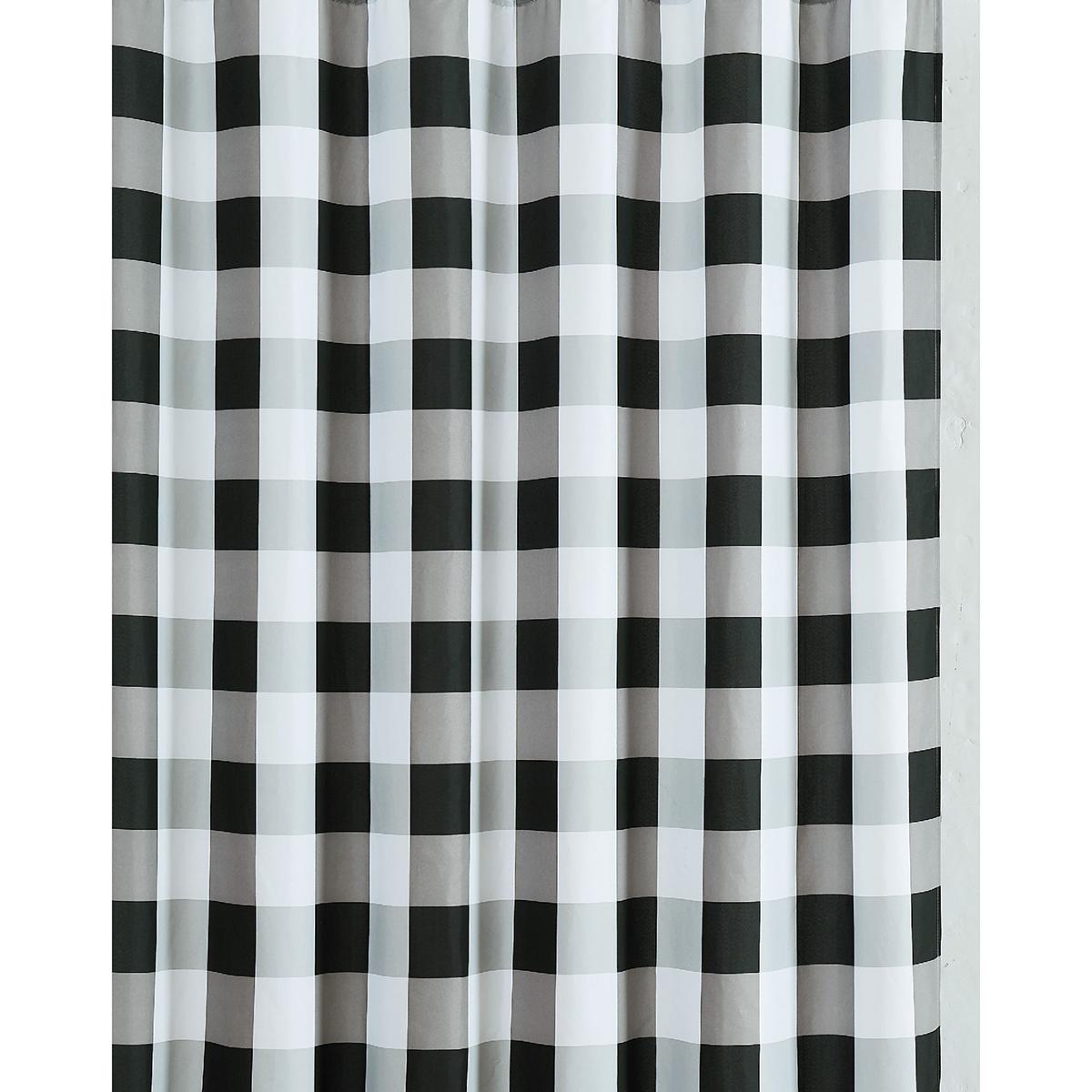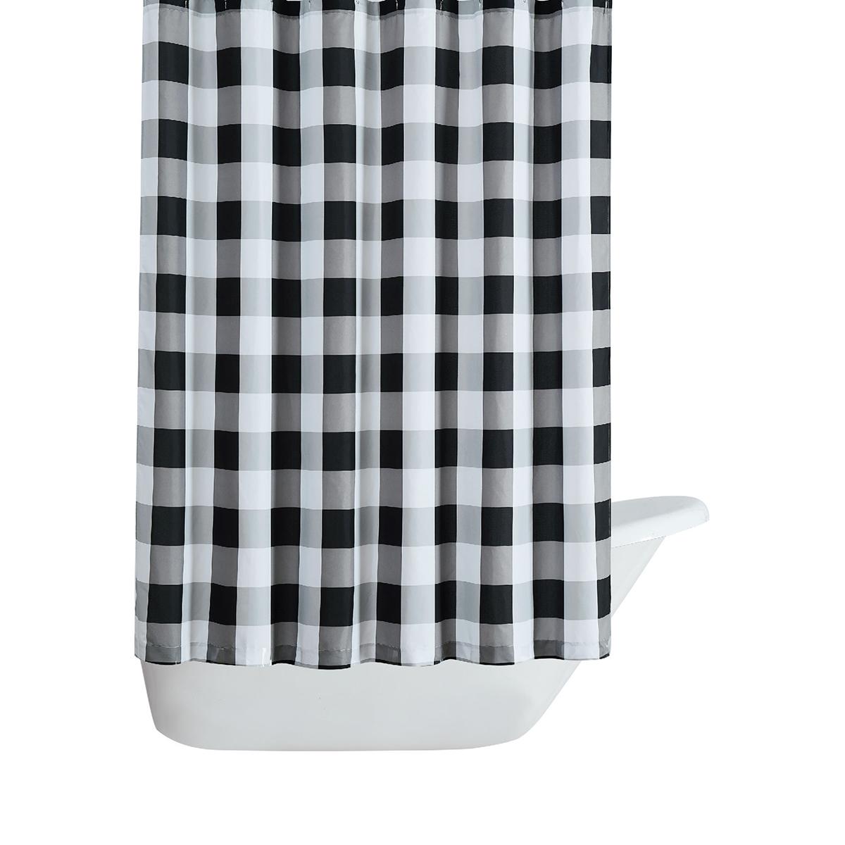 Truly Soft Everyday Buffalo Plaid Black Shower Curtain. This large buffalo check print features a white background in an intersecting pattern on the face of the shower curtain. Each item has reinforced hook holes. Hardware and rings are not included and should be purchased separately. Hooks and hardware are not included and should be purchased separately. The face and back are 100% microfiber. This item is machine washable, but please be sure to use appropriately sized machinery to avoid any excess wear on the items. This item is manufactured and imported from China.Includes: one shower curtain 72x72 inches.This item requires oversize delivery. Please refer to the Order Summary in the Shipping step at checkout for delivery charge.