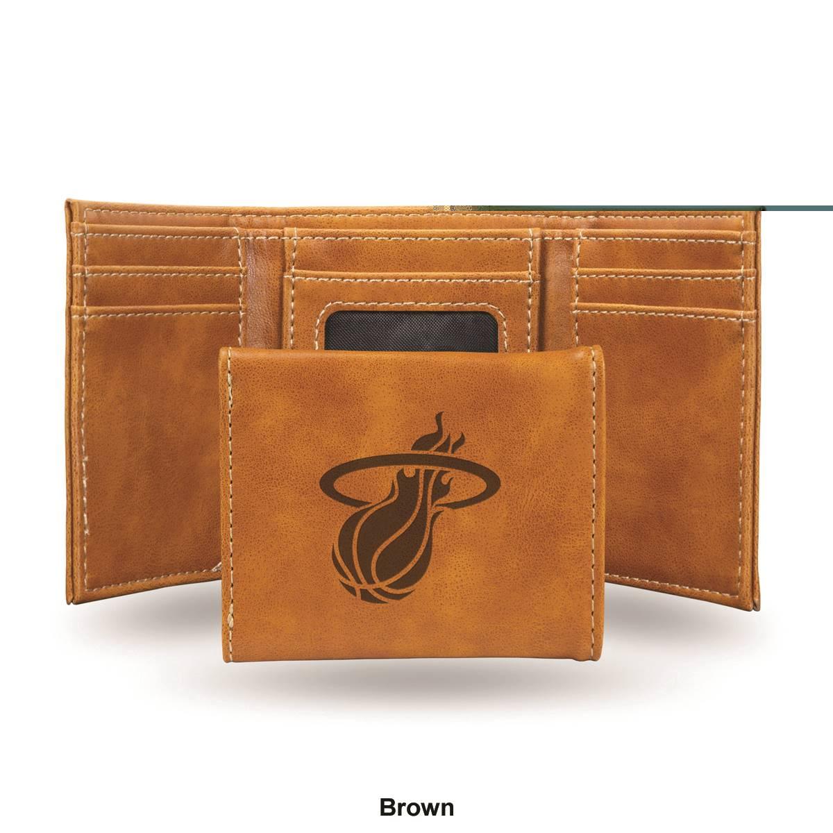 Description Carry a part of your favorite team with you and simultaneously keep your money safe with this Mens NBA Miami Heat trifold wallet. Made of faux leather, the 4-inch...