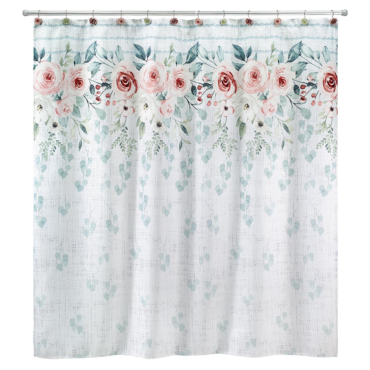 Description Bring the beauty of a romantic garden to your bathroom with the Avanti Spring Garden shower curtain. It is decorated at the top with beautiful pink and white peonies...