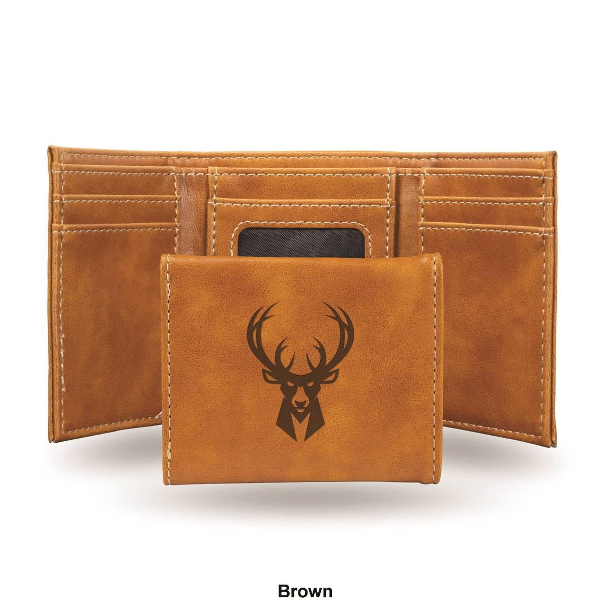 Carry a part of your favorite team with you and simultaneously keep your money safe with this Mens NBA Milwaukee Bucks trifold wallet. Made of faux leather, the 4-inch long and 3.25-inch wide wallet features a Milwaukee Bucks embossed logo, card slots, and an ID window for a complete look.