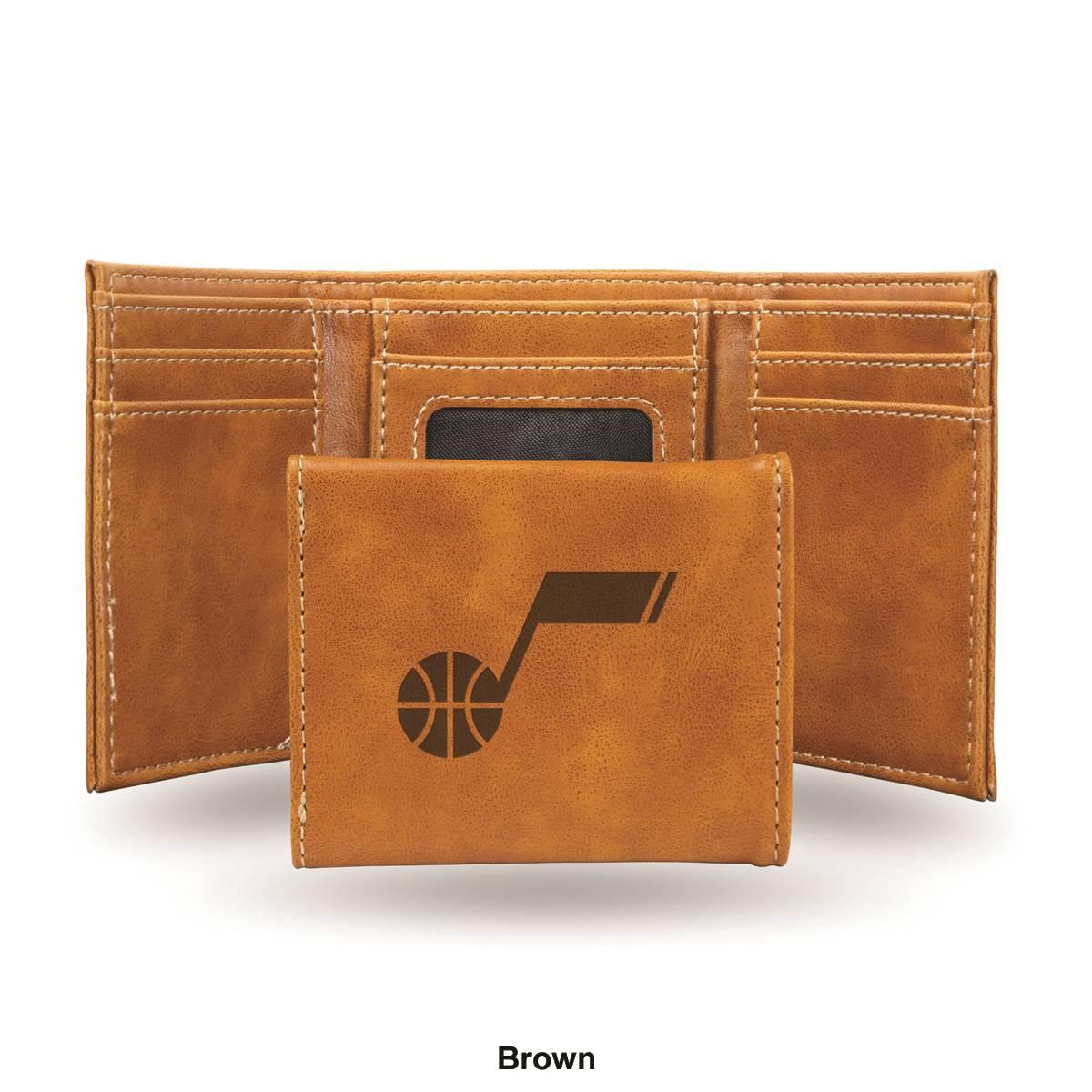 Carry a part of your favorite team with you and simultaneously keep your money safe with this Mens NBA Utah Jazz trifold wallet. Made of faux leather, the 4-inch long and 3.25-inch wide wallet features a Utah Jazz embossed logo, card slots, and an ID window for a complete look.