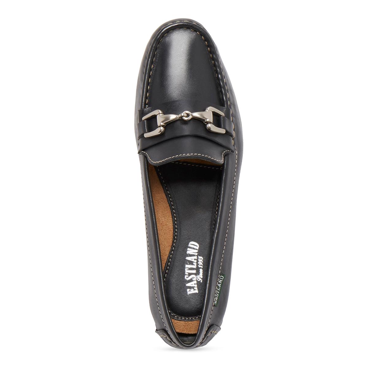 These Womens Eastland Olivia loafers are detailed with silver bit hardware and feature a full-grain leather upper with silver horse-bit hardware. Comfort insoles support and conform to the curves of your foot and the rubber driving moc outsole for great comfort, slip resistance, and durability.