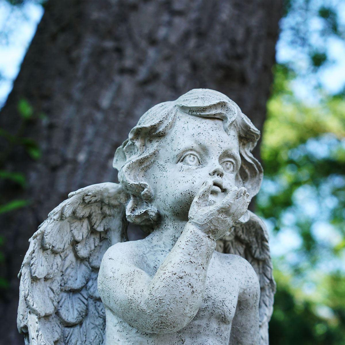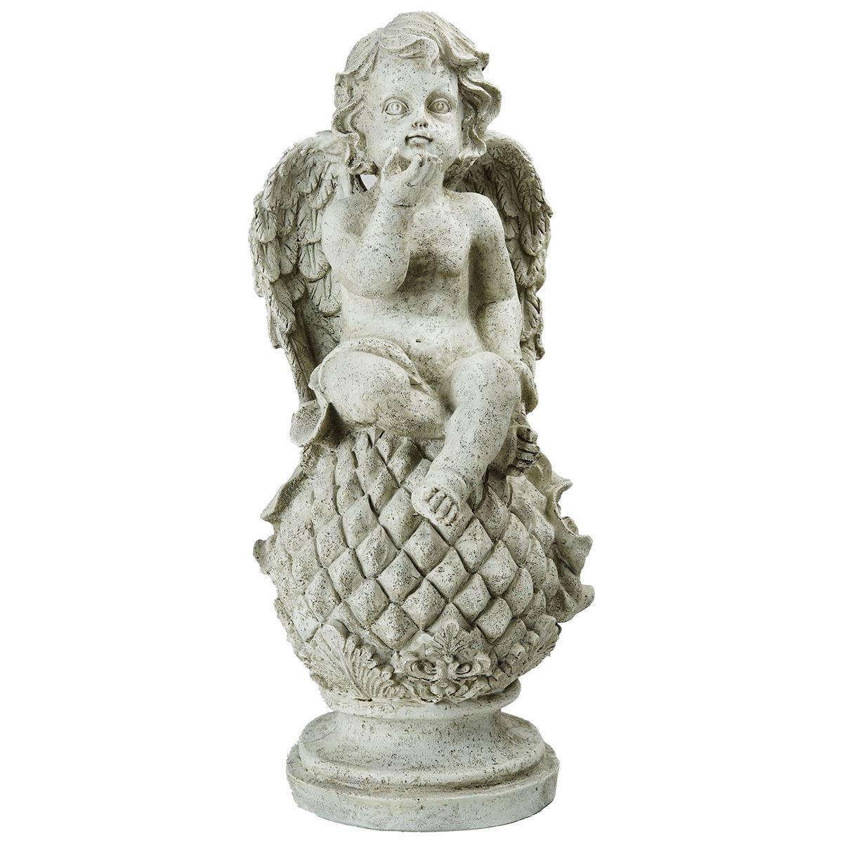 This Northlight Seasonal 18.25 inch cherub angel garden statue will make a great addition to your outdoor living space. Its design showcases a cherub angel blowing kisses from the top of a finial decoration. The intricate details from the feathers on his wings to the texture and design of the finial are truly beautiful. M