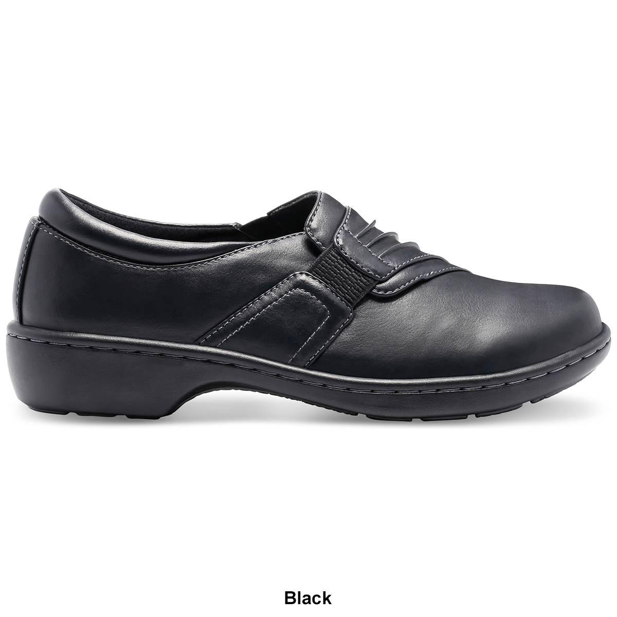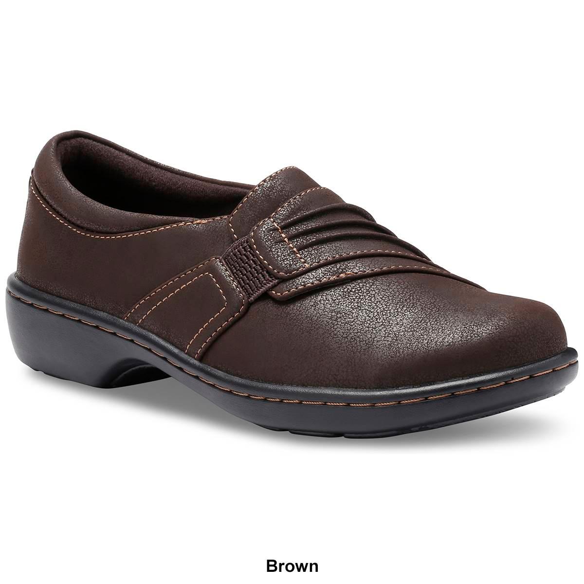 Pleated detailing adds interest to these Womens Eastland Piper loafers. Featuring a synthetic upper with fabric lining and dual-side elastic allows for easy on and off with a customized fit. A comfort insole supports and conforms to the curves of your foot with shock-absorbing Polyurethane outsole that offers lightweight durability and traction.