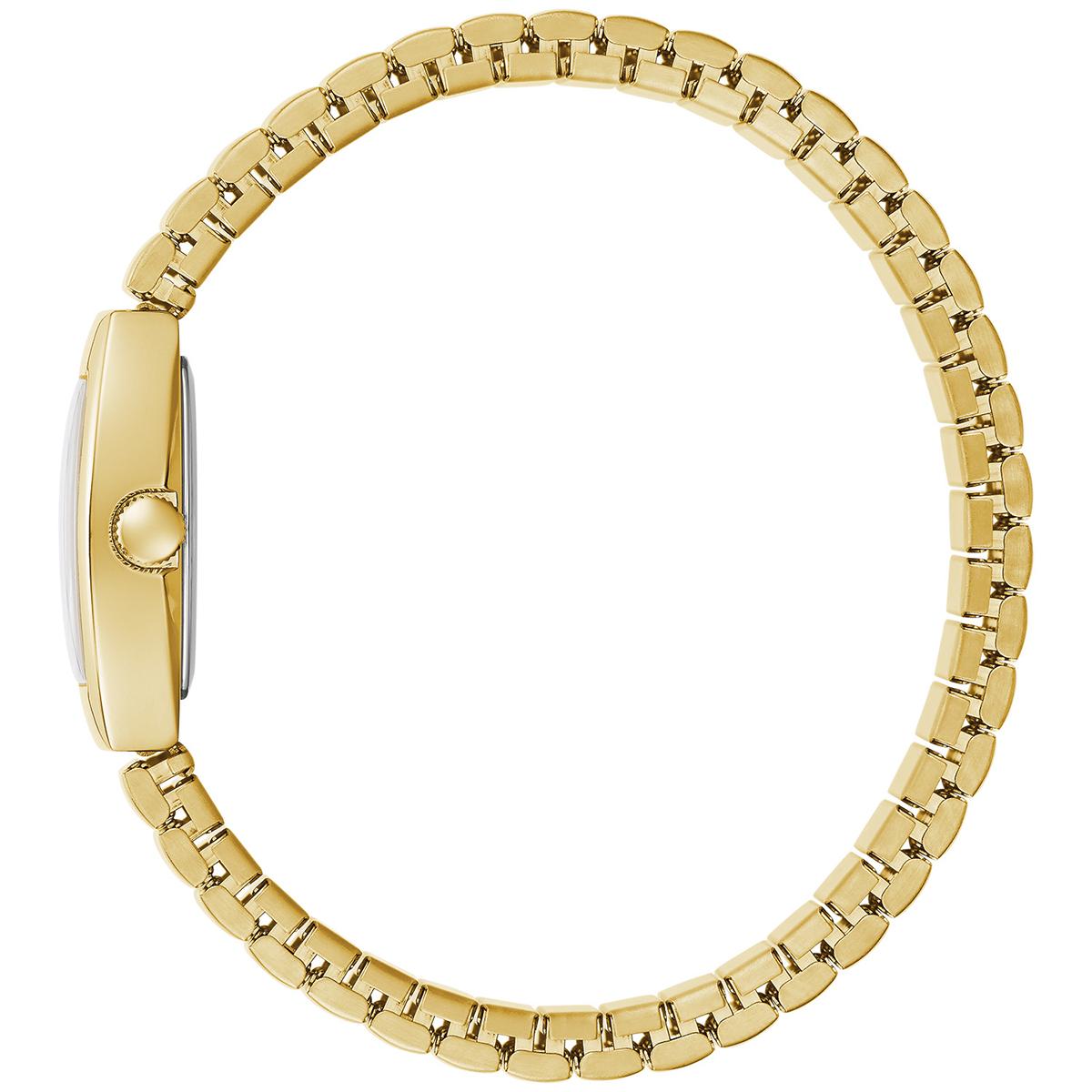 The Womens Caravelle by Bulova goldtone bracelet watch is a new shape for elegant wear. This watch offer a goldtone case with a champagne dial featuring bold, easy to read Arabic numerals with a mineral crystal lens. This watch is water-resistant up to 30 meters.Limited Manufacturer´s Warranty.