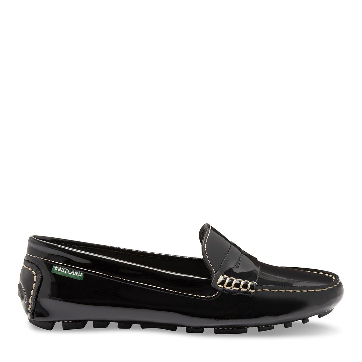 Enjoy the everyday comfort your feet deserve in these Womens Patricia slip on loafers. With a patent leather upper and soft fabric lining for barefoot comfort. Featuring a comfort insole that supports and conforms to the curves of your foot and a rubber driving moc outsole for great comfort, slip resistance and durability.