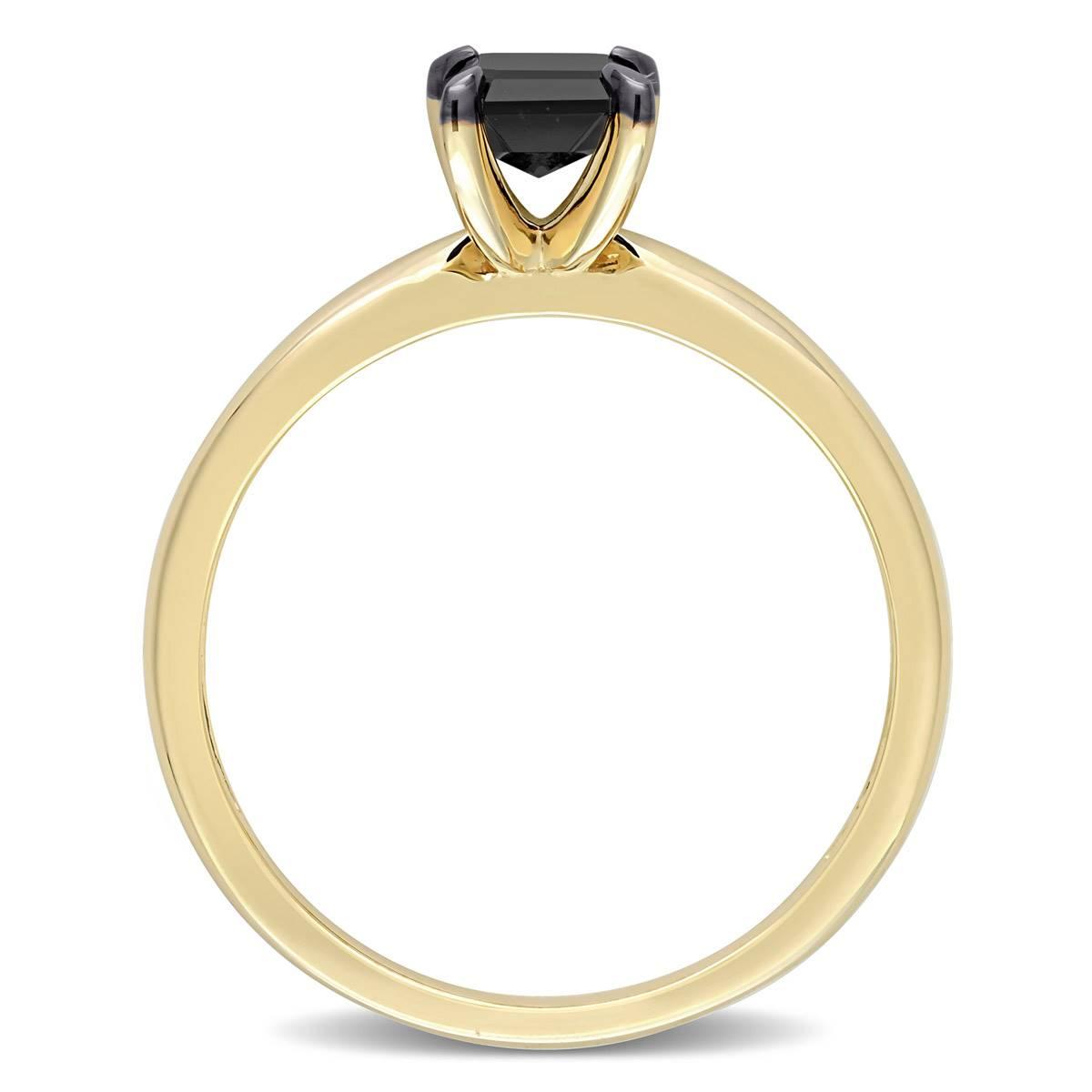 This Radiant Rainbow™ emerald-cut black diamond engagement ring is crafted in 14kt. yellow gold with black rhodium plating. The modern wedding ring features an emerald-cut, prong-set black diamond at the center.