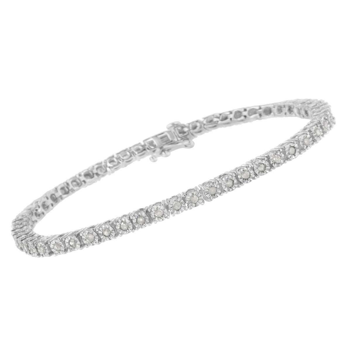 Description Fifty-four miracle set rose cut diamonds twinkle in this Diamond Classics™ tennis bracelet with a box clasp. Crafted in polished sterling silver and featuring a...
