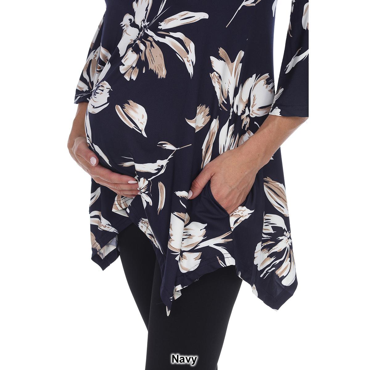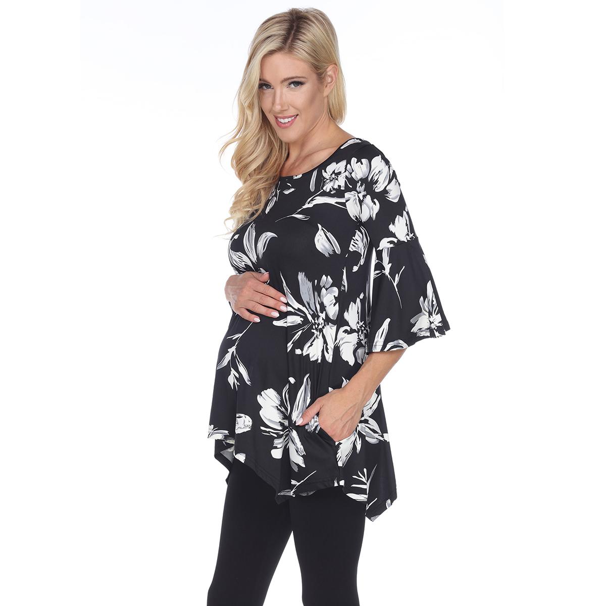 This flattering Womens White Mark Roche tunic maternity top drapes stunningly on your body. Featuring bell sleeves that add a festive flair to this versatile crew neck tunic along with a shark bite hem that drapes nicely.