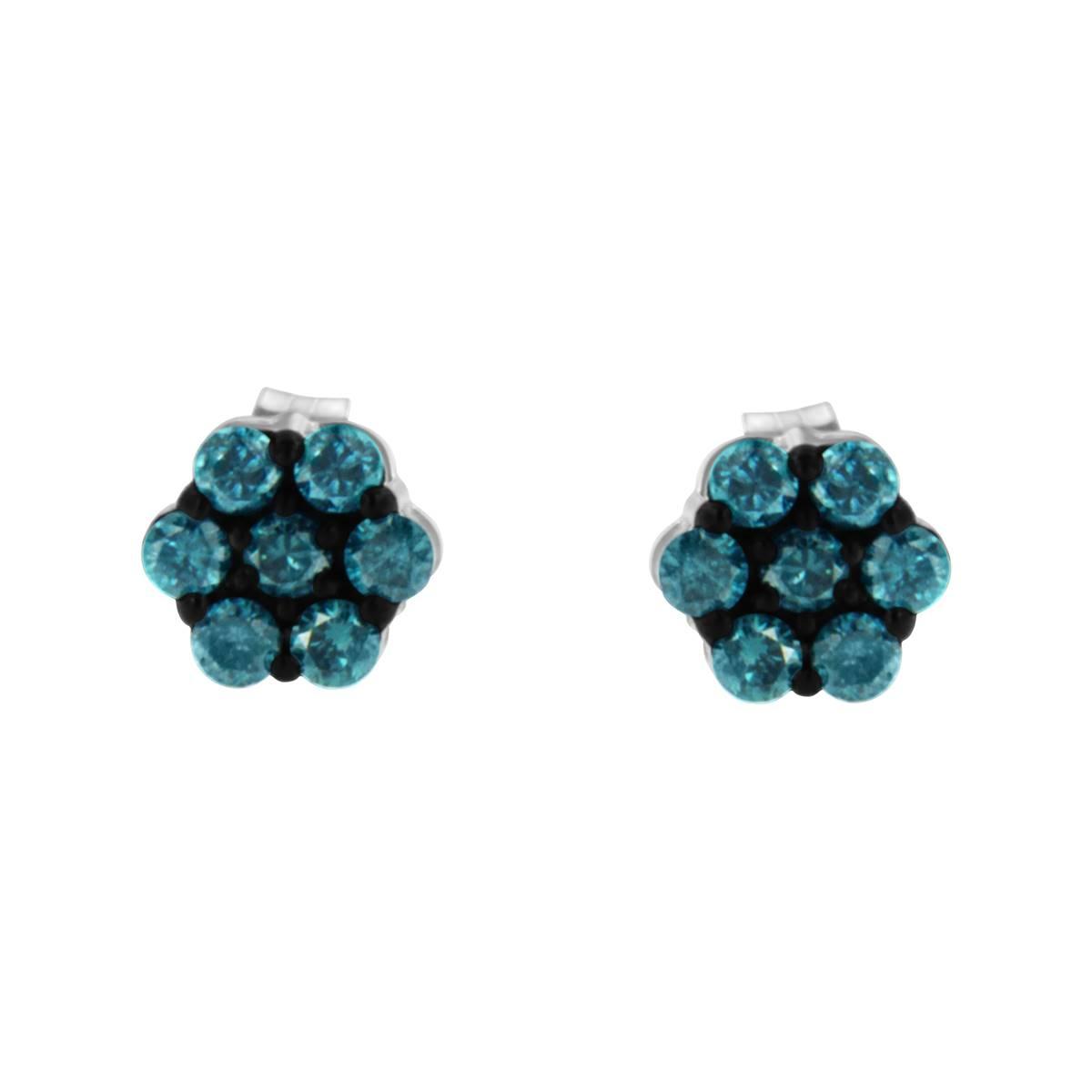 You will fall in love with these Radiant Rainbow™ 1/2ctw. blue diamond floral stud earrings. A must-have for any serious jewelry collection. The earrings are floral clusters with seven round, brilliant-cut diamonds in shared prong settings. These classic, elegant floral cluster stud earrings make a great gift for any special occasion!