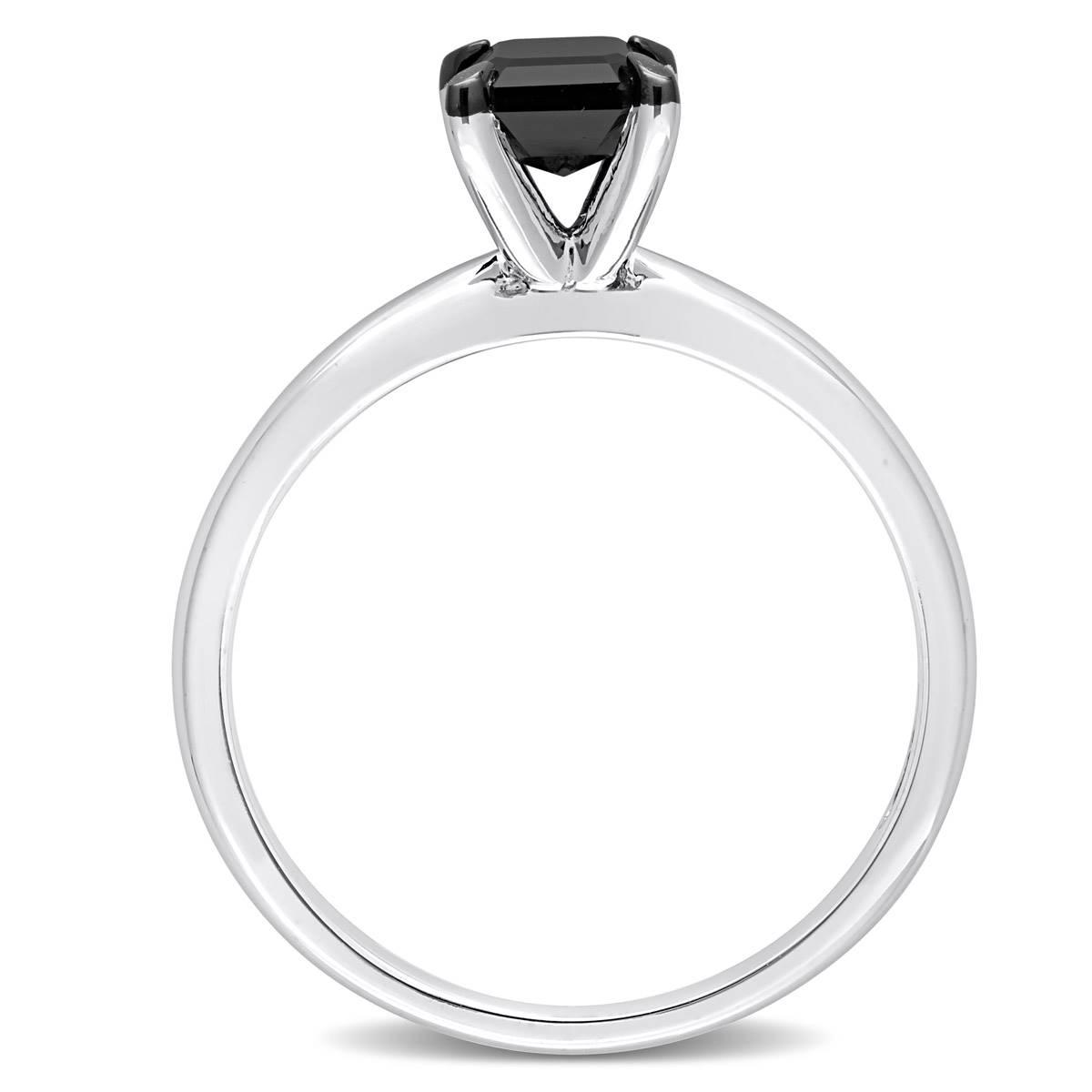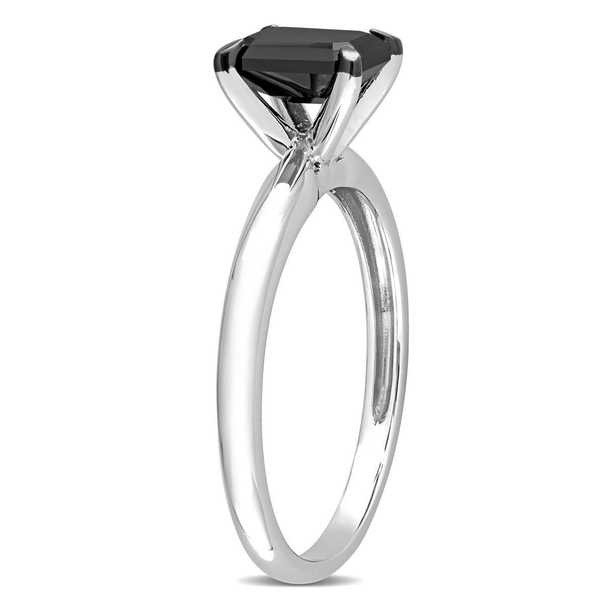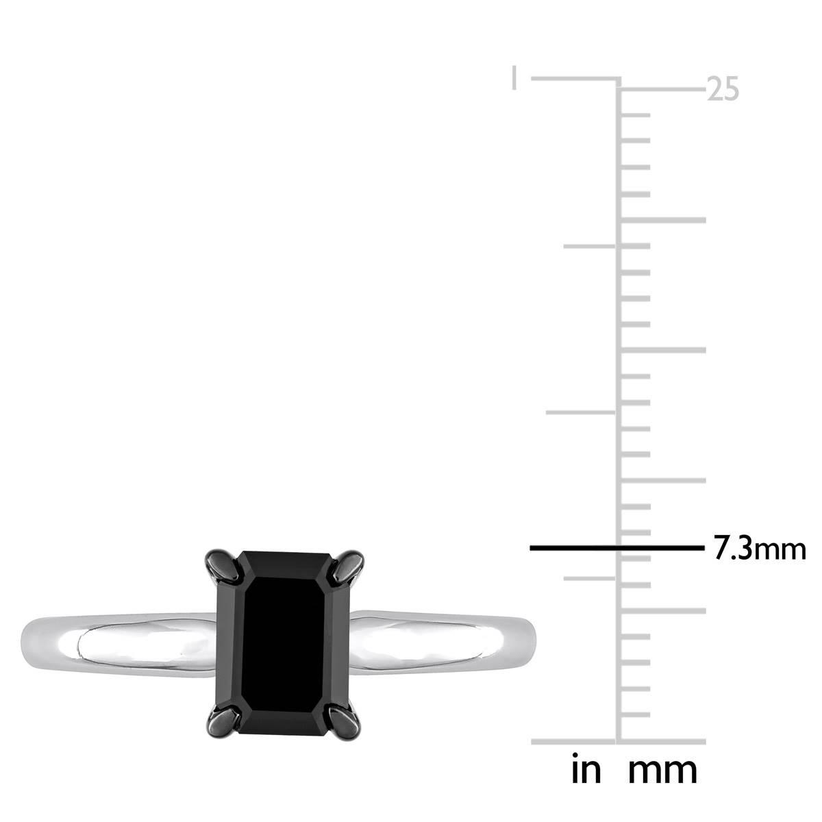This Radiant Rainbow™ white gold emerald-cut black diamond ring is crafted in 14kt. white gold with black rhodium plating. The modern wedding ring features an emerald-cut prong-set black diamond at the center.