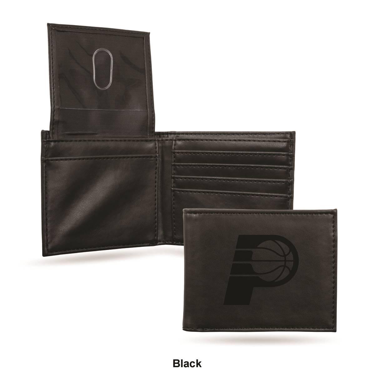Organize your bills, credit cards, and important business cards in this Mens NBA Indiana Pacers faux leather wallet. Embossed with an Indiana Pacers team logo, the bifold wallet comes with multiple card slots and an ID window. Support your favorite NBA team with this 4.25-inch long and 3.5-inch wide wallet.