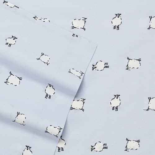 This Poppy & Fritz Sheep cotton sheet set will add a touch of excitement to your bedding ensemble. It has a playful pattern of sheep and has a 200 thread count. The fitted sheet is fully elasticized to prevent slipping from your mattress. This set includes 1 flat sheet, 1 fitted sheet and pillowcase(s). 100% Cotton. Machine wash cold. Tumble dry low.