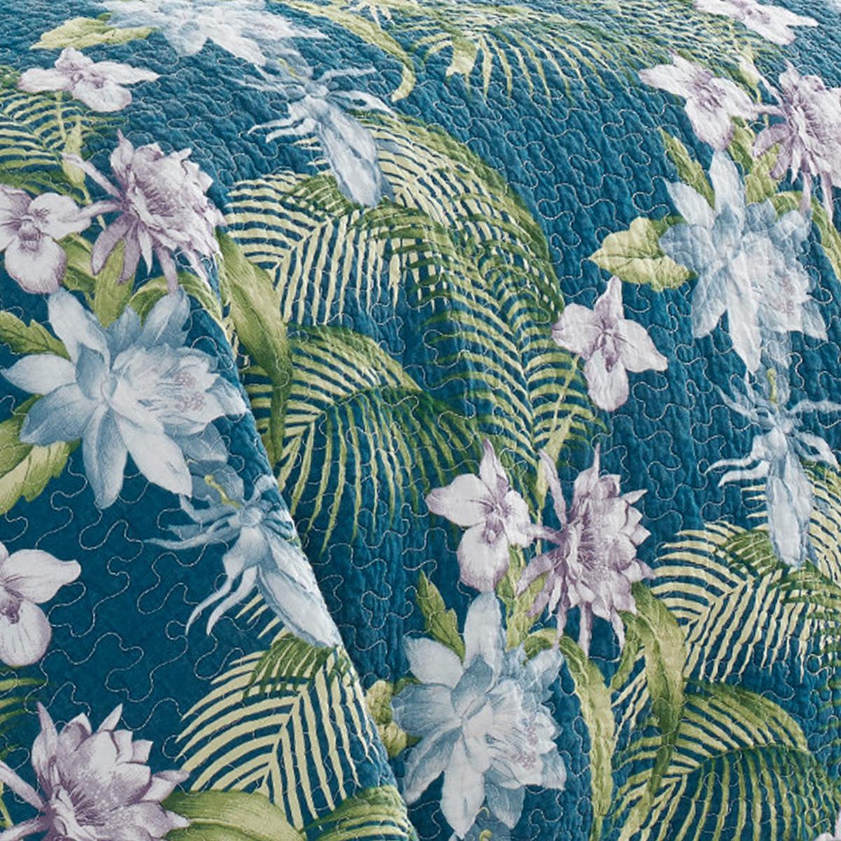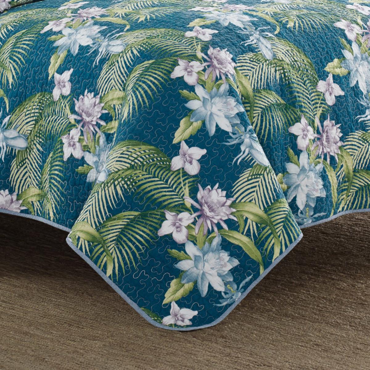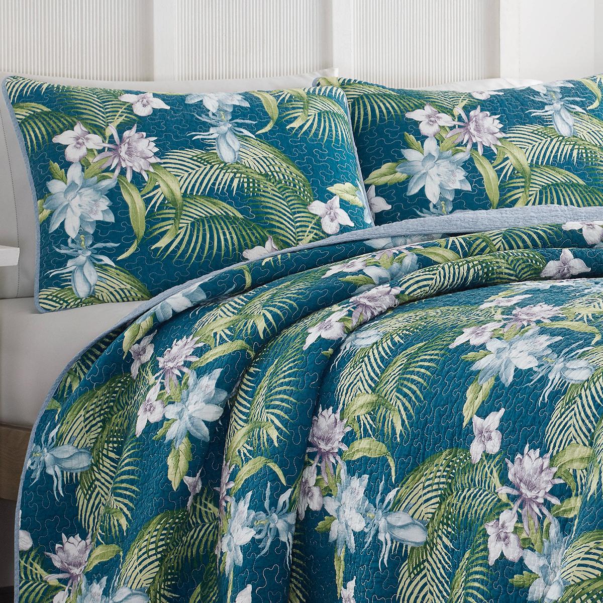 Description The Tommy Bahama Southern Breeze cotton quilt set features a bold leaf design with exotic flowers. Quilt and shams feature an indigo blue ground that gives way to the...