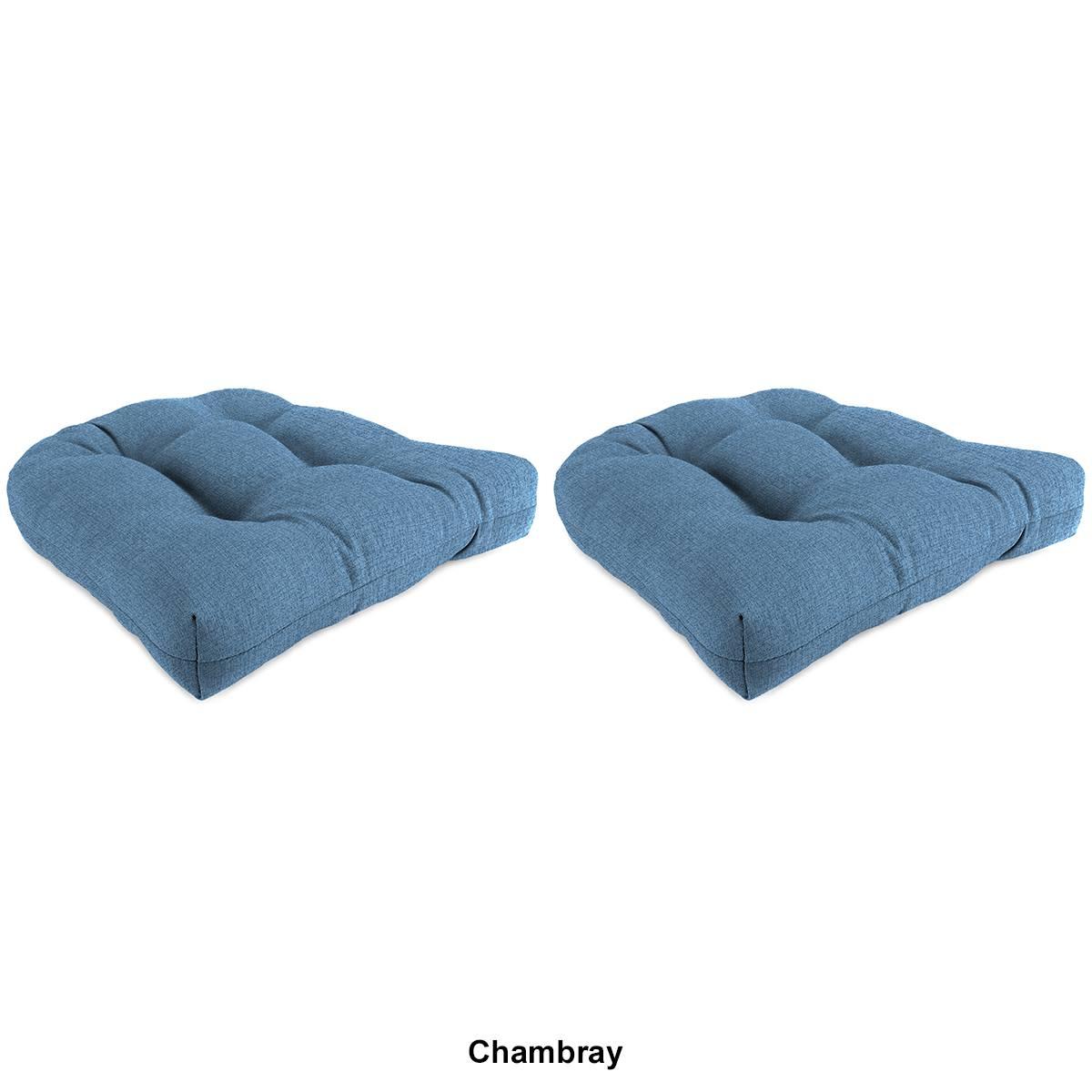 Description Bring optimal comfort to your wicker patio chairs with this Jordan Manufacturing set of 2, Knife-Edge cushions. These cushions are made with weather-, water-, fade-...