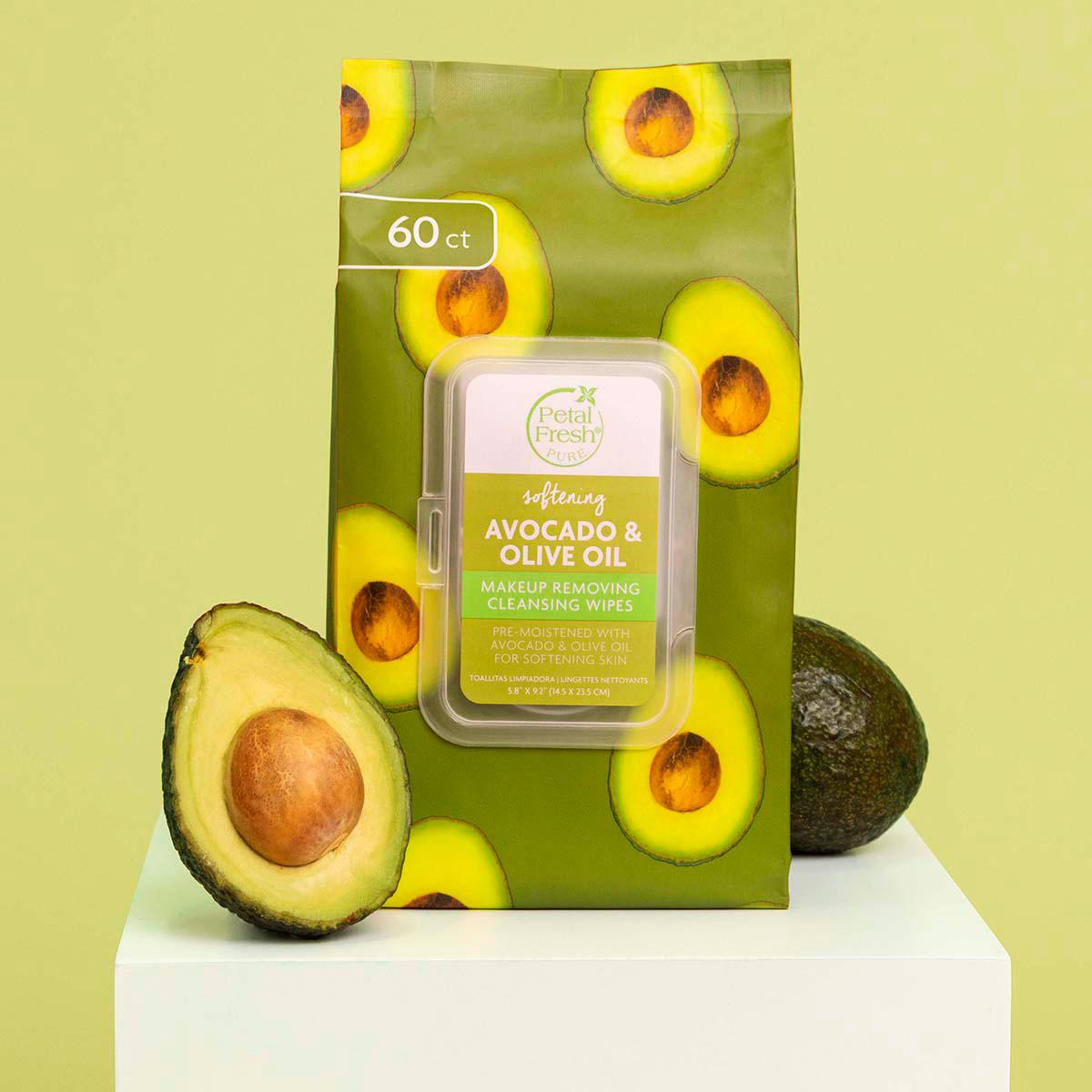 Petal Fresh Softening Avocado & Olive Oil Makeup Wipes. Whether you´re on the go or just want a quick clean-up, the Brightening Avocado and Olive Oil Softening and Protecting Facial Wipes from Petal Fresh is just the thing you need. The pre-moistened soft clothes don´t´ require any water so you don´t have to worry about rinsing. Petal Fresh is an affordable, healthy choice because it uses high-quality standards and natural ingredients to cleanse, nourish and produce healthier, more attractive hair and skin without using harsh chemicals.