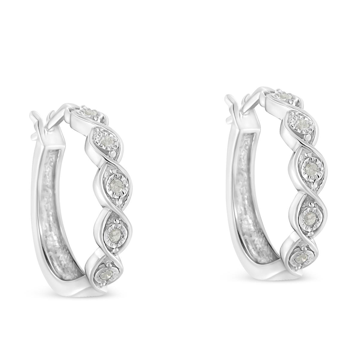 These Diamond Classics™ 1/10ctw. diamond swirl hoop earrings will make the perfect addition to your jewelry collection. Beautiful hoop earrings made of the finest sterling silver and genuine diamonds with a miracle setting. These diamond hoop earrings will make you the wonder of your events, no matter the occasion. They come with a latch mechanism for added security.