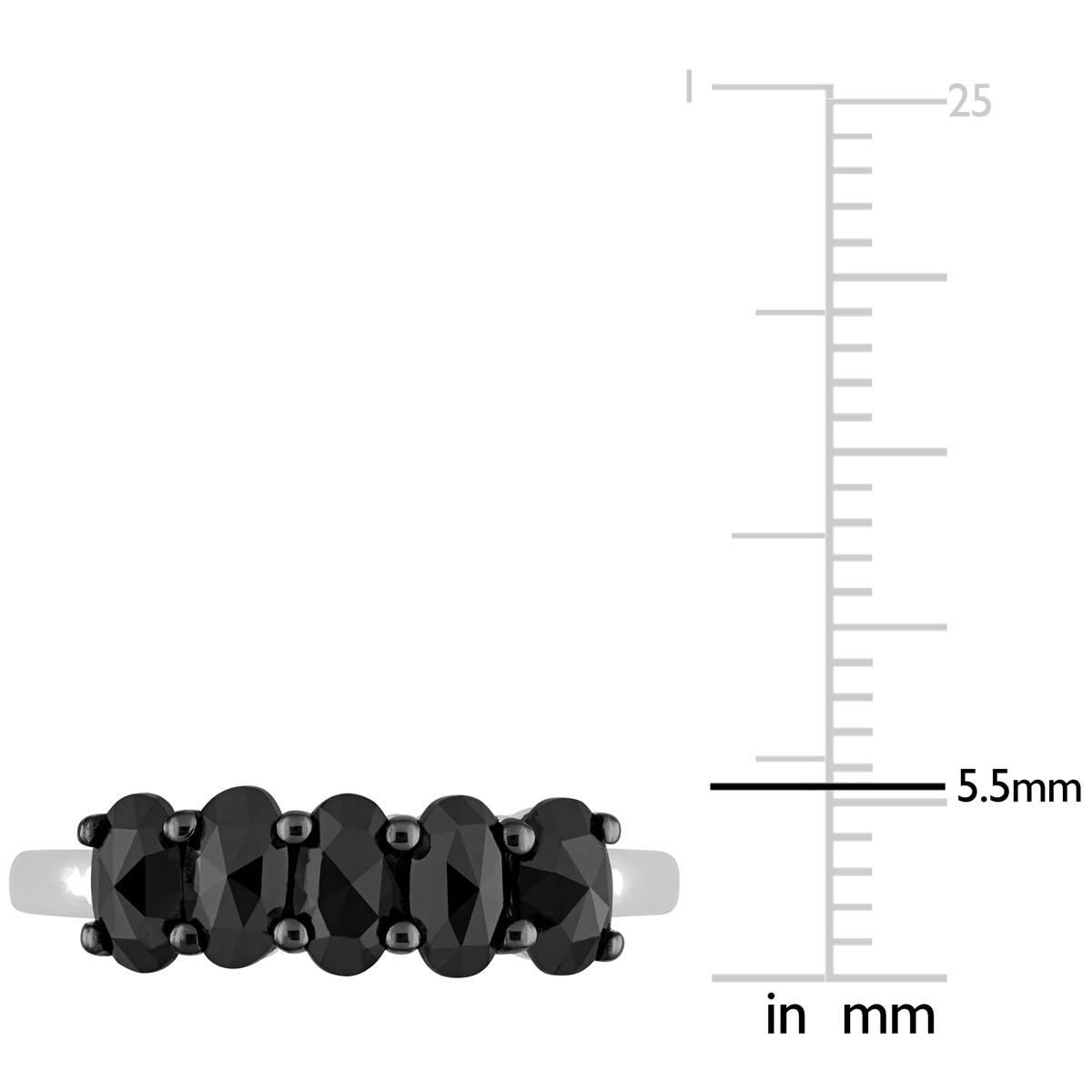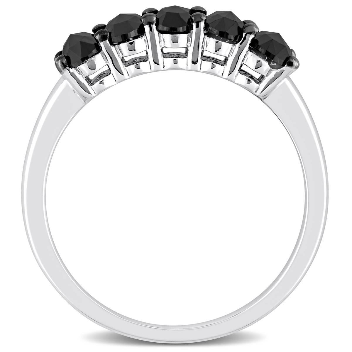 This Radiant Rainbow™ black diamond semi-eternity ring is crafted in lustrous 10kt. white gold with black rhodium plating. The beautiful stackable anniversary ring features five oval-cut black diamonds halfway on its band creating a classic look.