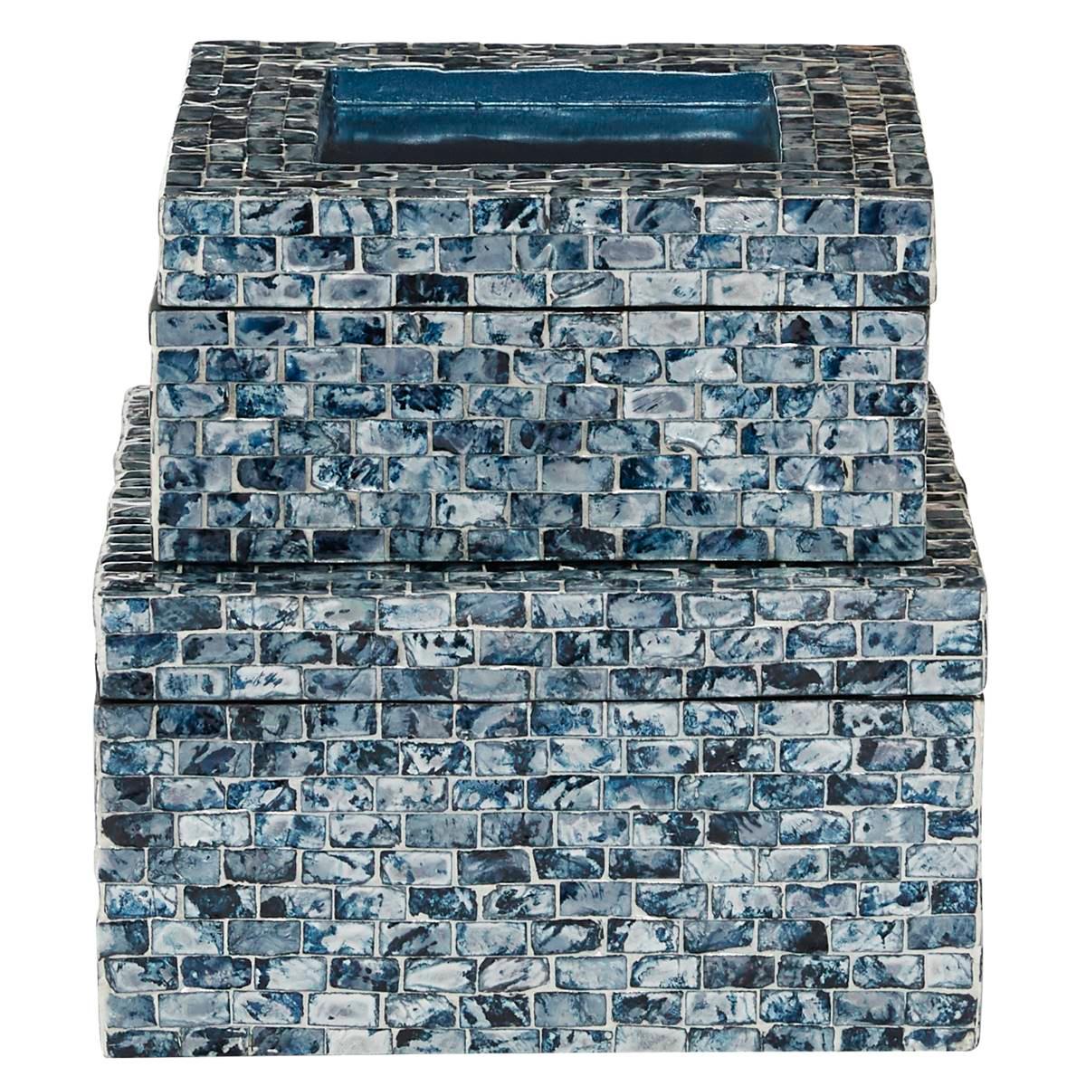 Description Enhance an accent table or a nightstand with this 9th & Pike® set of two shell mosaic patterned storage wood boxes. Attractively stylish brick patterns with blue,...