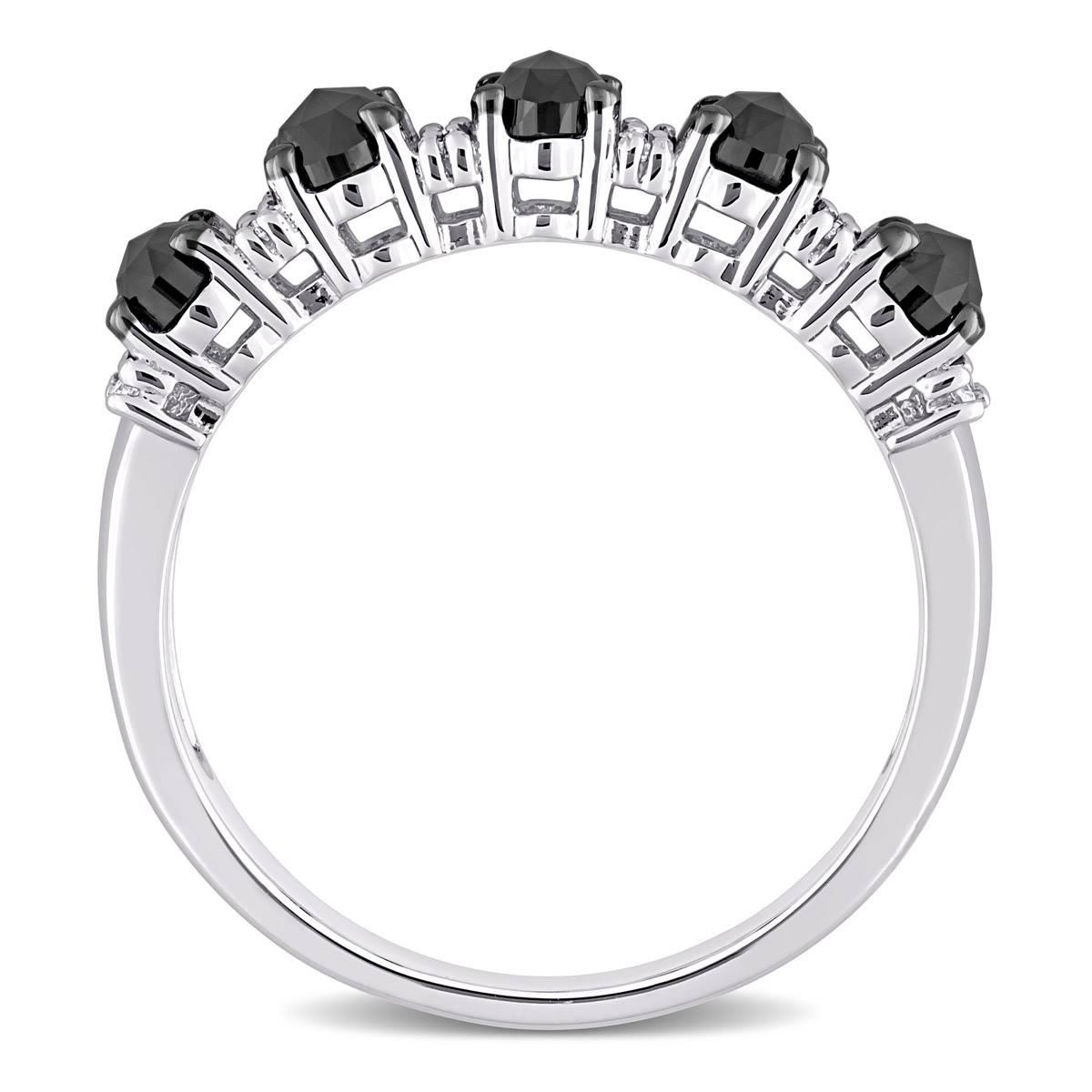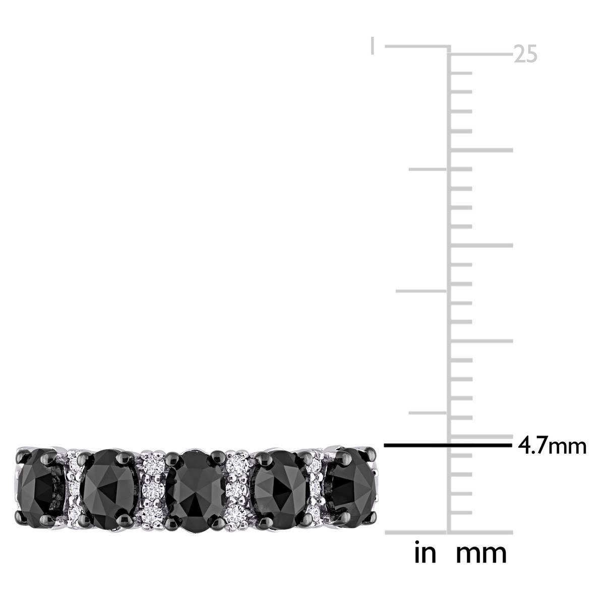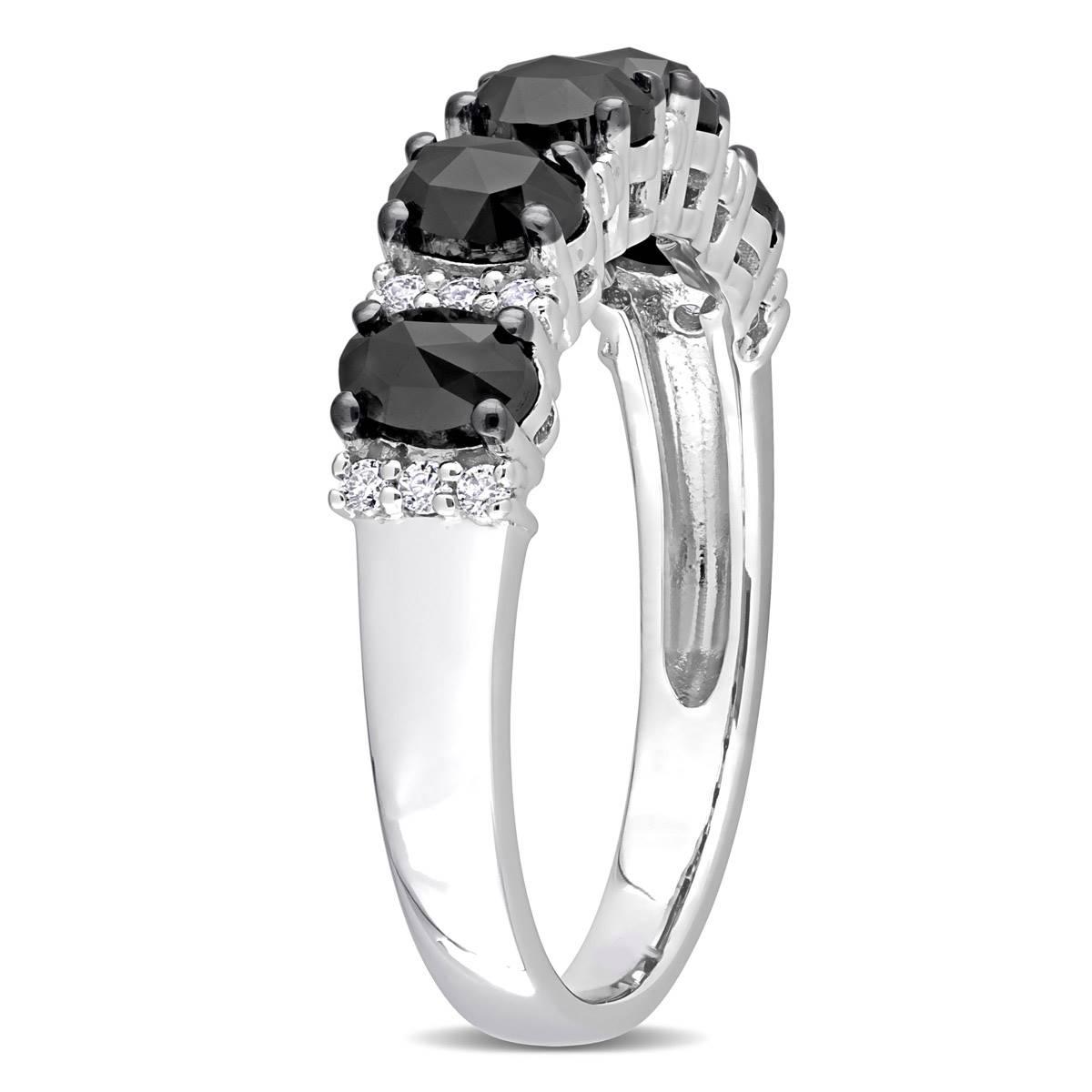 This Radiant Rainbow™ white gold moissanite Semi-eternity band is mounted in 10kt. white gold. The sophisticated anniversary ring features five oval-cut, prong-set black diamonds adorned with 18 round-cut, prong-set, created moissanite gemstones.