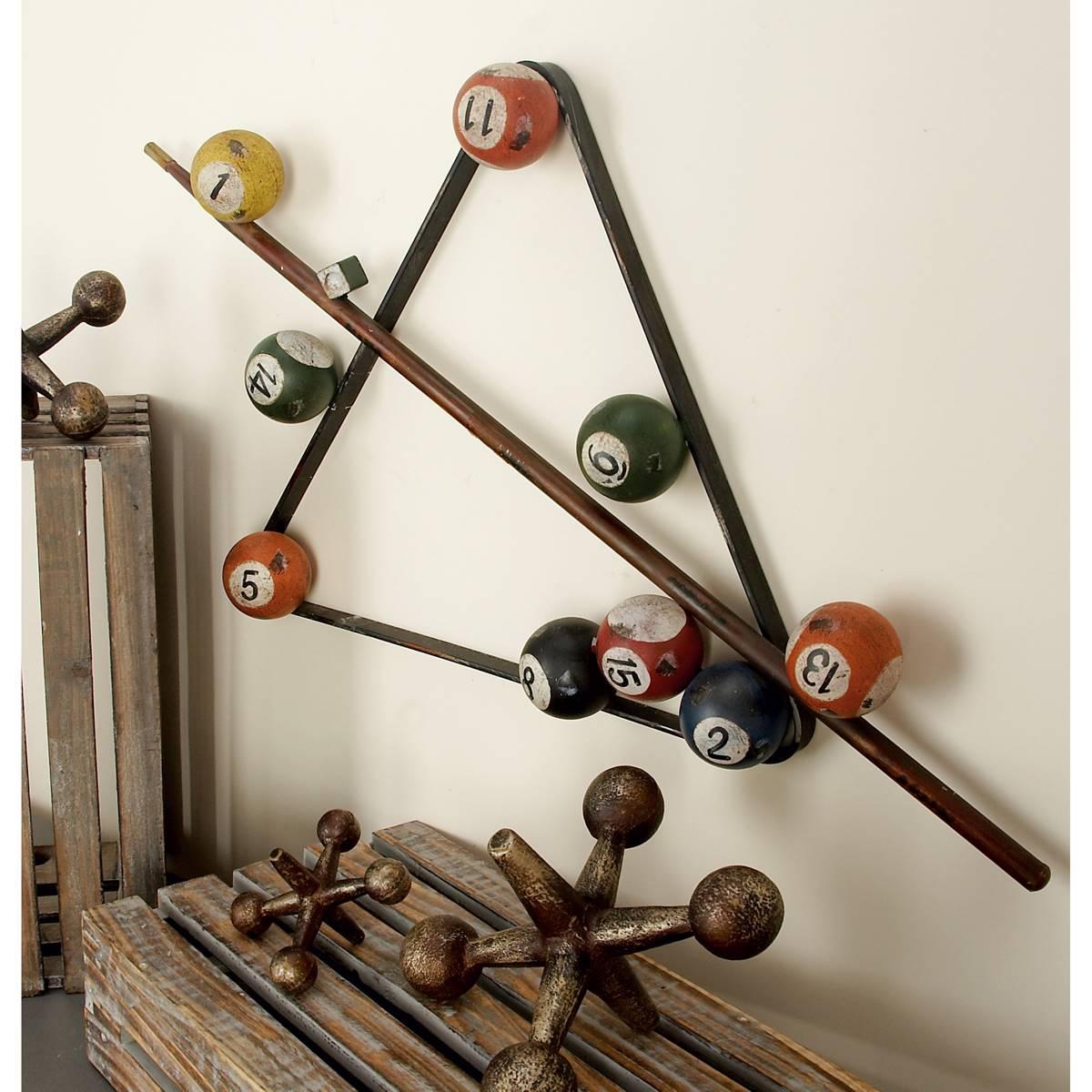 Description This 9th & Pike® multi-colored billiards set iron wall plaque is perfect for your home décor. This sporty wall sculpture features a rusty and vintage-styled...