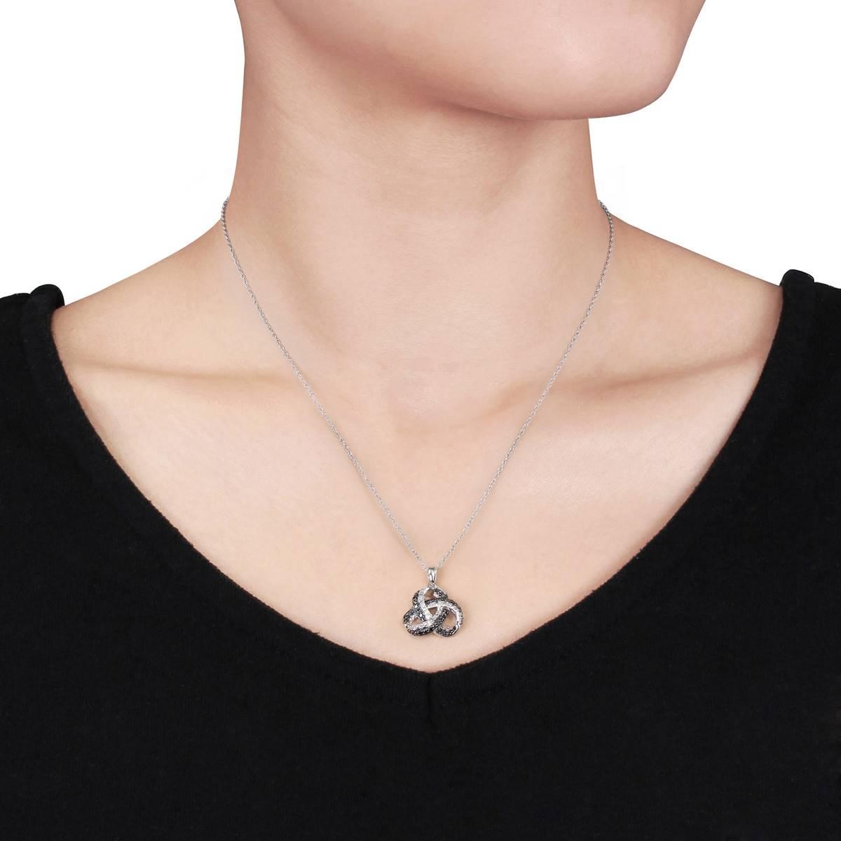 Description This Radiant Rainbow™ 1/4ctw. Diamond Love Knot Pendant features round-cut black and white diamonds set in sterling silver. This graceful pendant is hung on a cable...