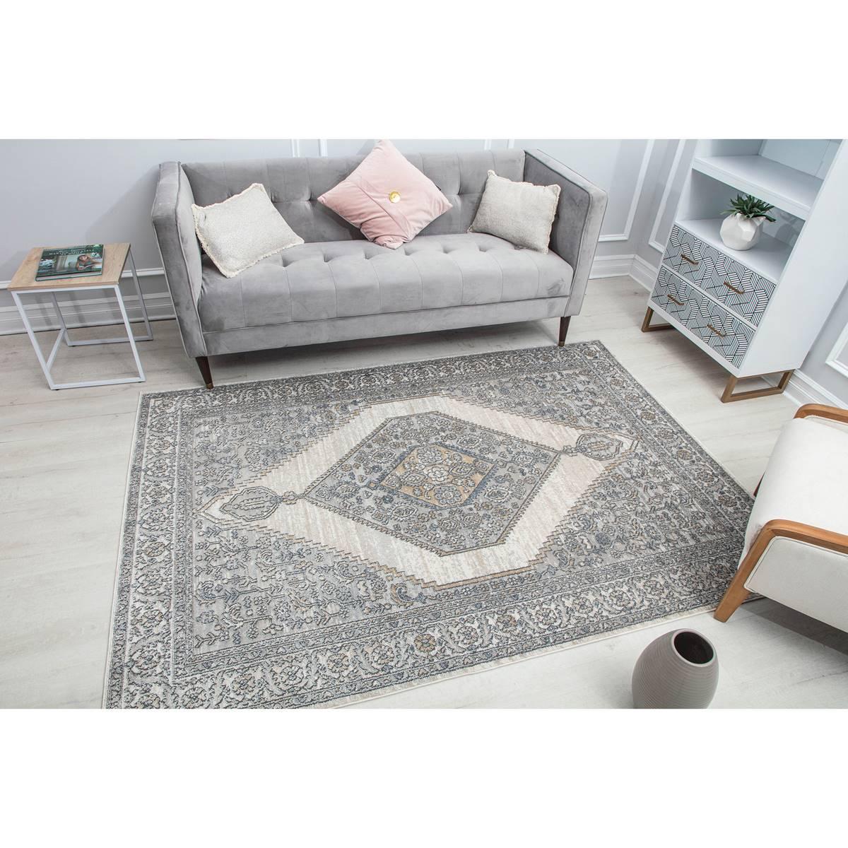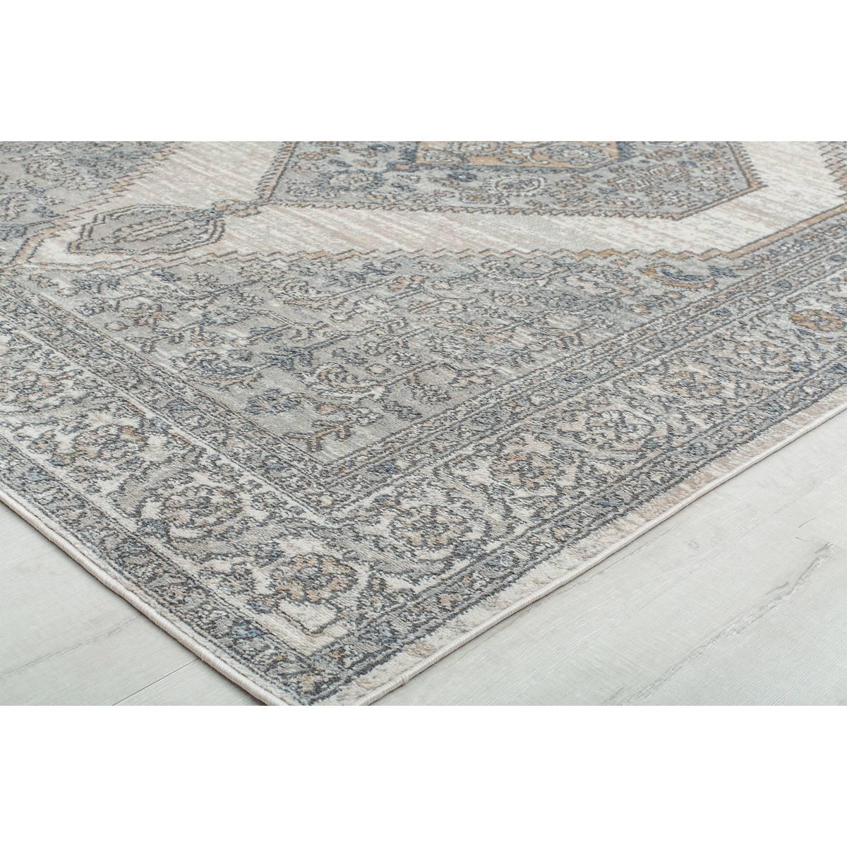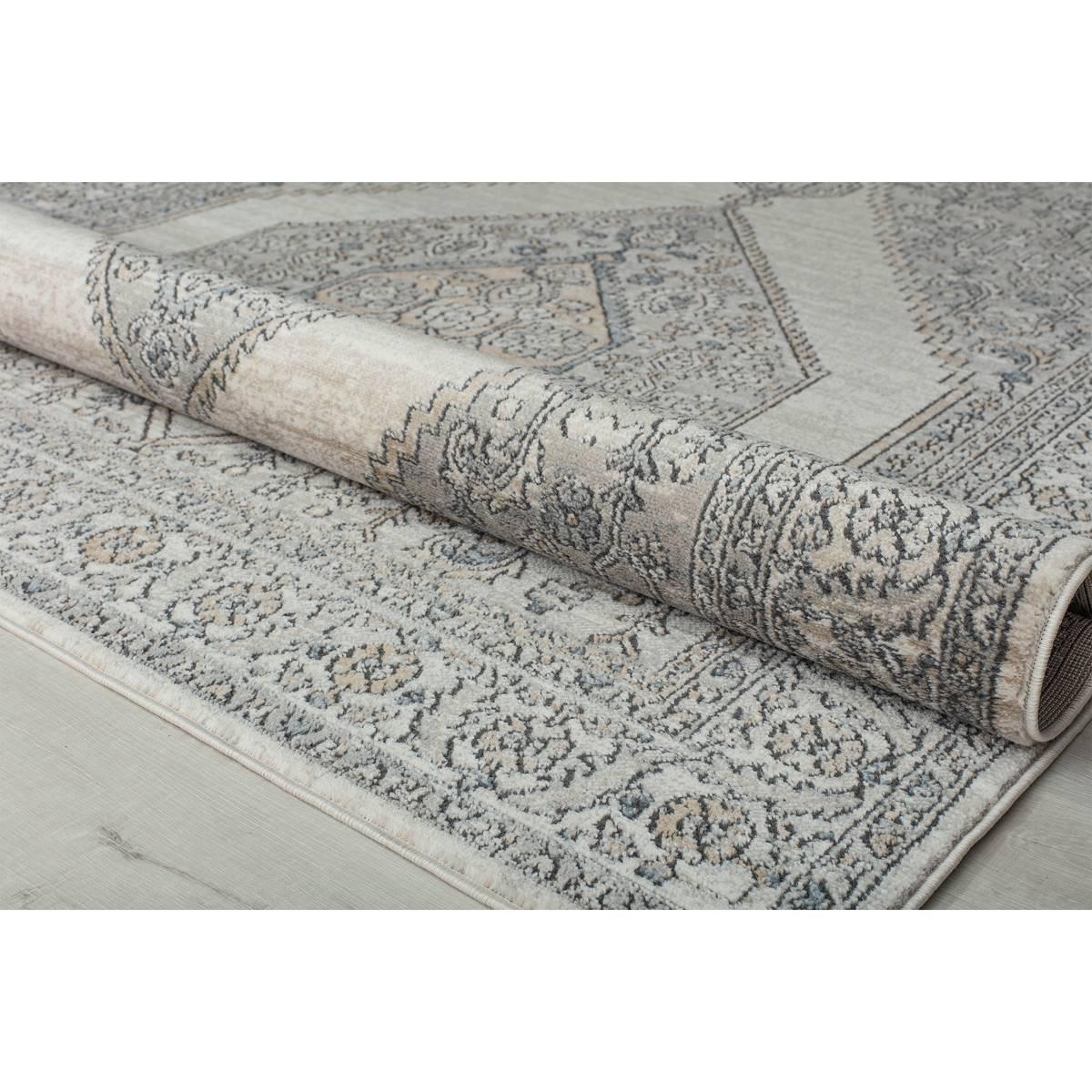 This Rugs America™ Milford Ivory Windsor Transitional Vintage Area Rug finds a playful balance between intricate design and negative space. The center medallion surrounded by creatively placed negative space creates an eye-catching element, unique from your typical traditional heirloom. Made in Turkey.