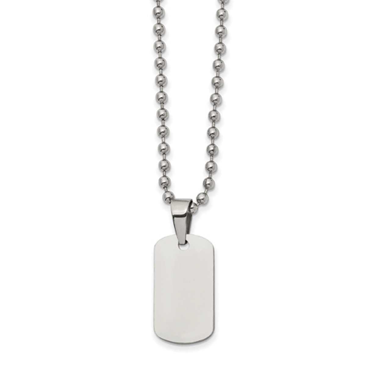 This Mens Gentlemen´s Classics™ stainless steel dog tag is striking with a reversible pendant. Its design can be engraved, is high polished, and hangs from a long ball chain that is secured with a fancy lobster clasp for closure.