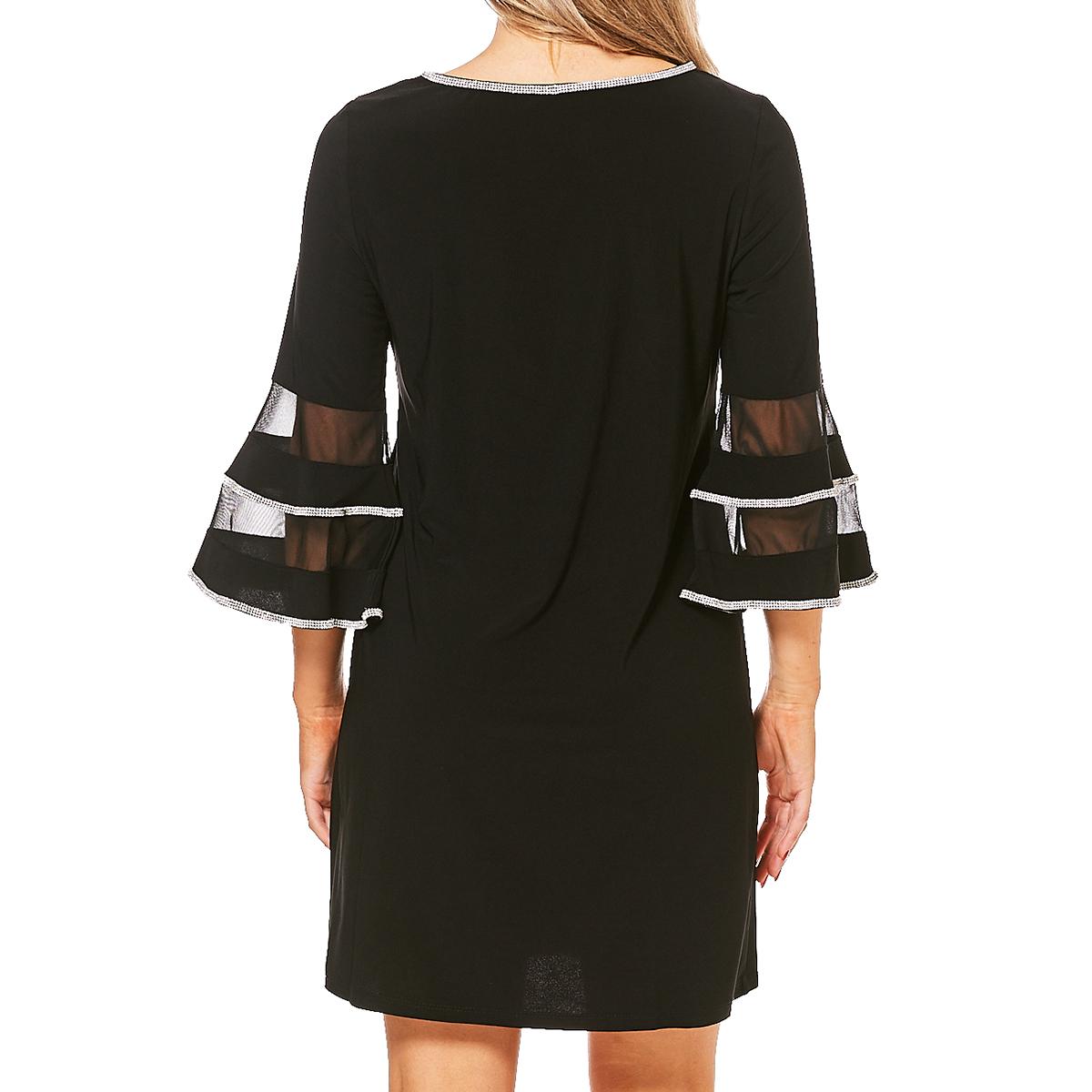 Petite MSK 3/4 Bell Sleeve Rhinestone Trim Shift Dress