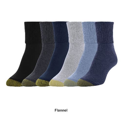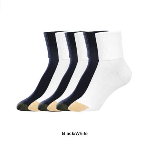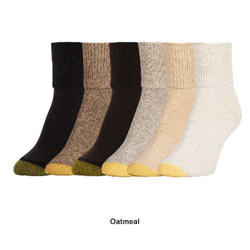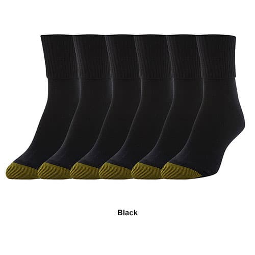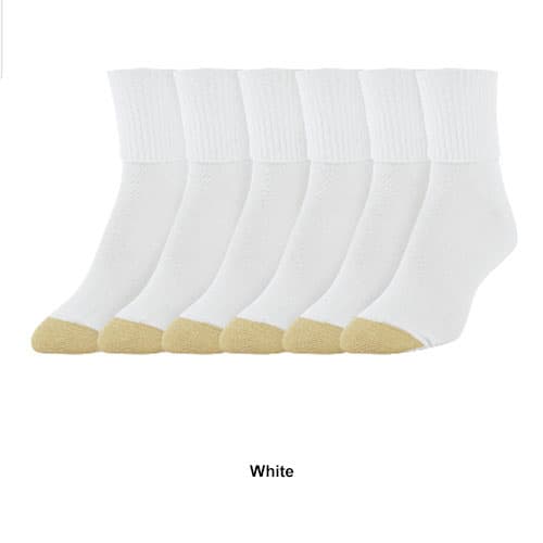 Description Womens Gold Toe® 6 pair extended turn cuff quarter socks offer a classic style that offers comfort and support. Material: 60% Cotton, 35% Polyester, 4% Spandex, 1%...