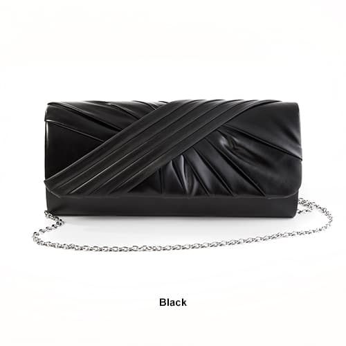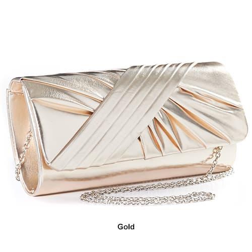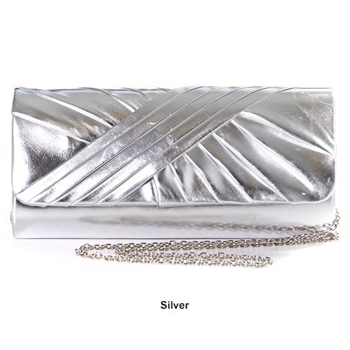 Add the perfect finishing touch to your favorite evening ensemble when you choose this Sasha evening clutch. It features a shiny smooth exterior shell that is accented by a front pleated design, silver-tone hardware, and a detachable chain shoulder strap. The interior features a fabric lining, 1 small slip pocket, and a magnetic snap closure.