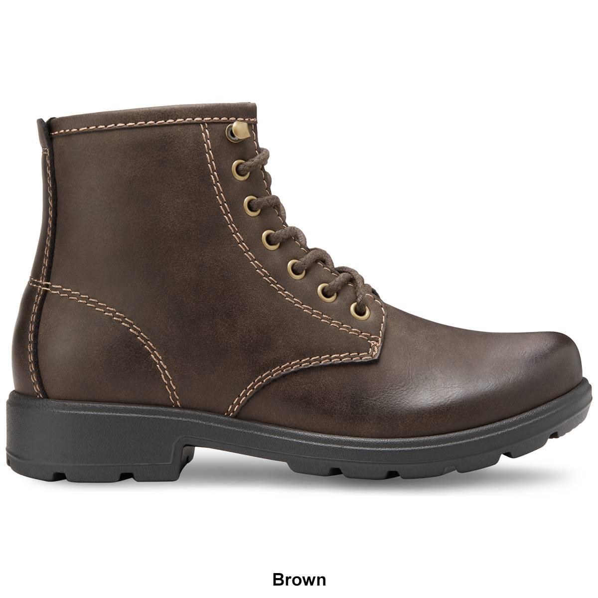 Description These Womens Eastland Brandy lace-up plain toe boots will lift up and stylish outfit. Made of a synthetic upper with fabric lining and fully-lined, cushioned insole...
