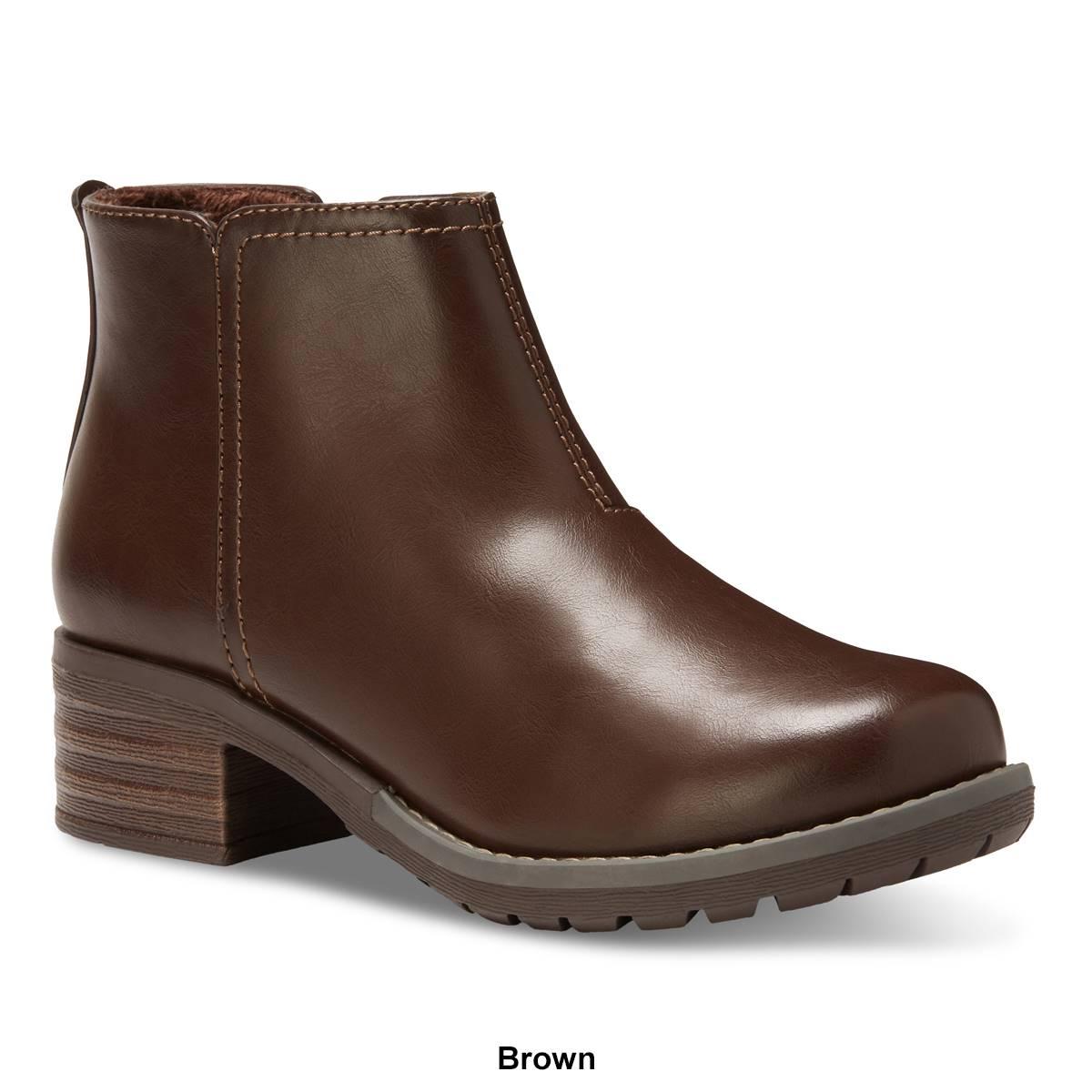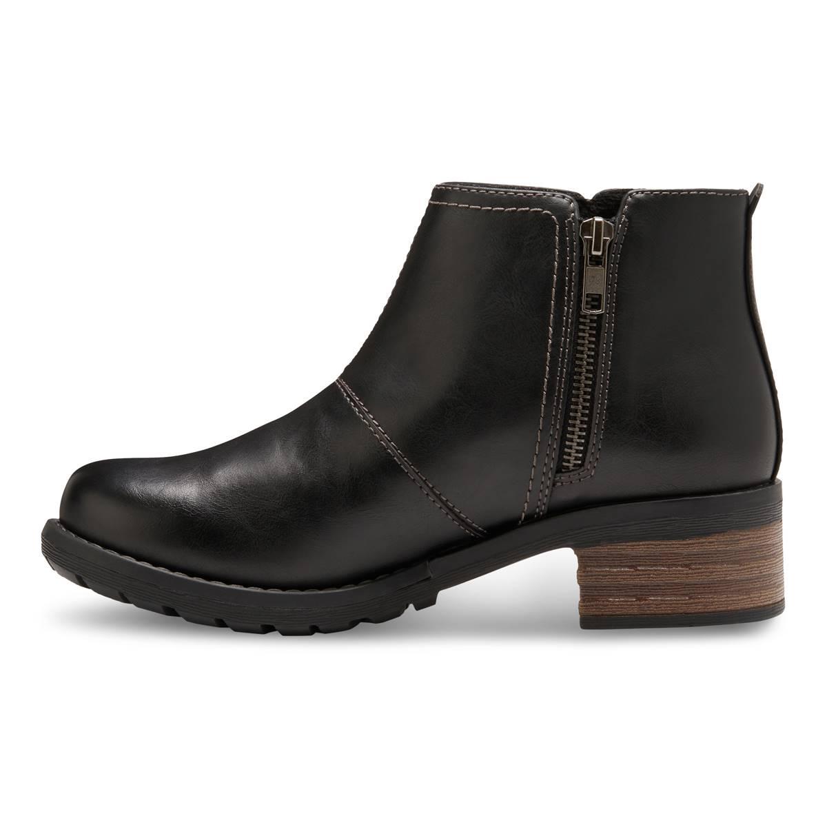Description These Womens Eastland Juniper Chelsea boots have a side zipper for easy on and off and all day comfort. Made of a synthetic upper with fabric lining with memory foam...