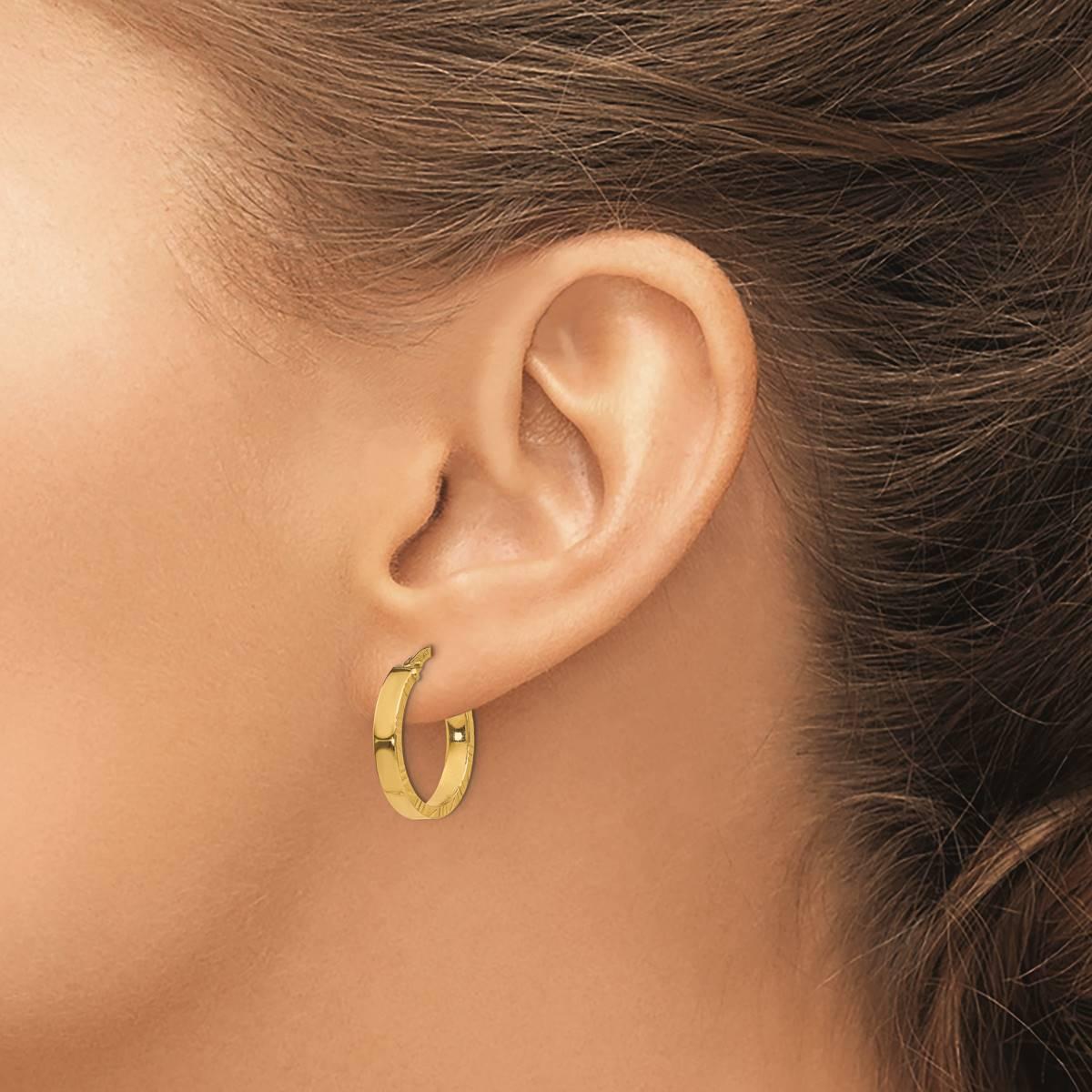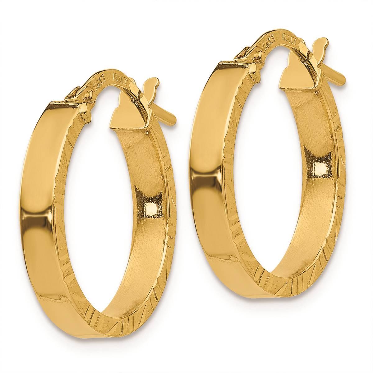 Description Embellish your ears with these ravishing Gold Classics™ 14kt. yellow gold hoop earrings. These 20x18.75mm earrings showcases diamond-cut detailed edge with...