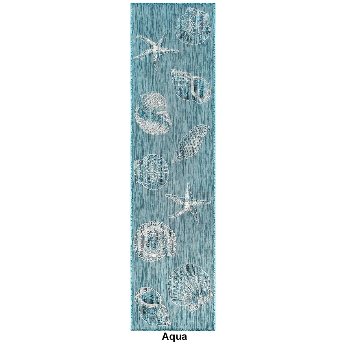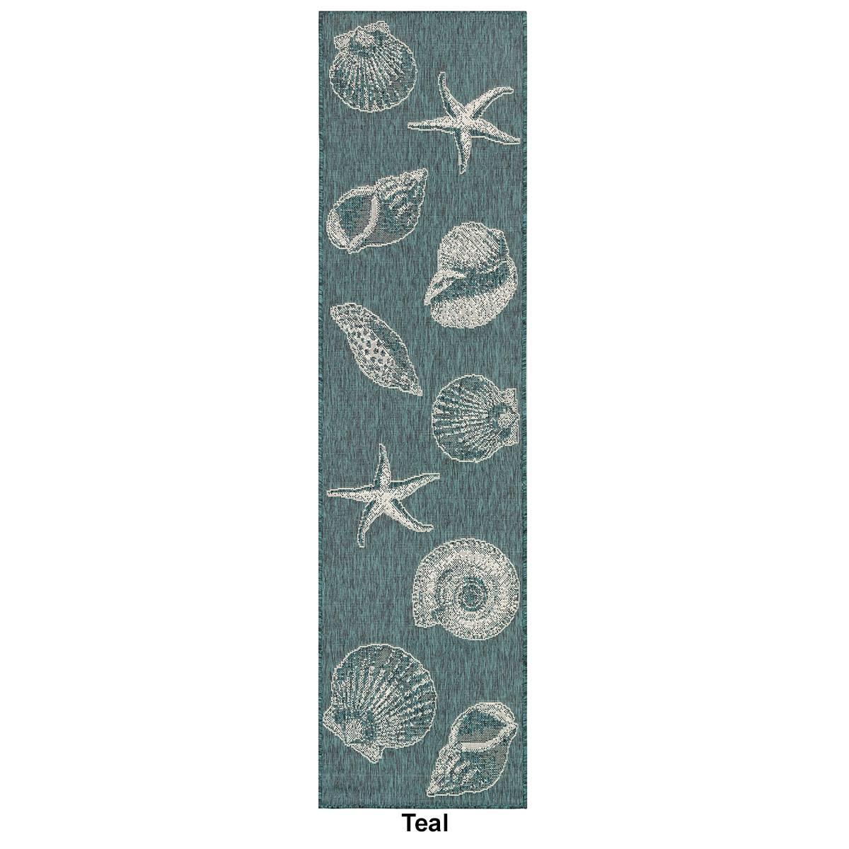 Description Add visual interest to your living space with this Liora Manne coastal-inspired runner featuring a variety of sea shells in a cool, crisp color palette. Wilton Woven...
