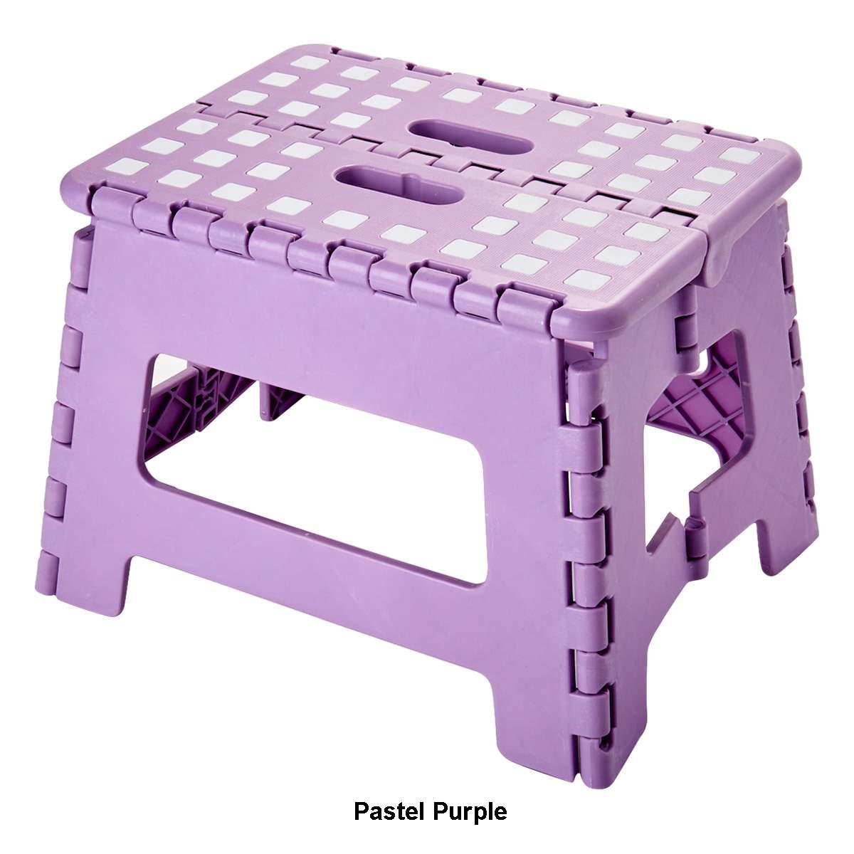 Description When you need a step up, get this foldable 9-inch step stool. This stool gives you an extra few inches in height to reach the top shelf or to change a light bulb....