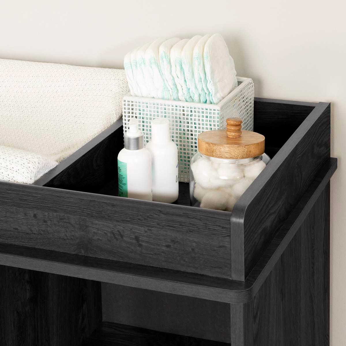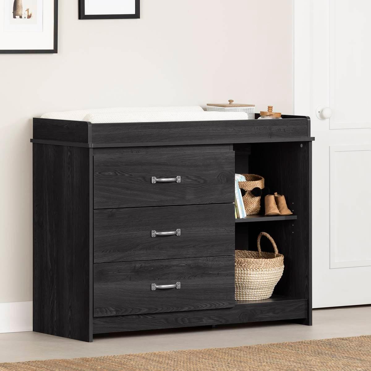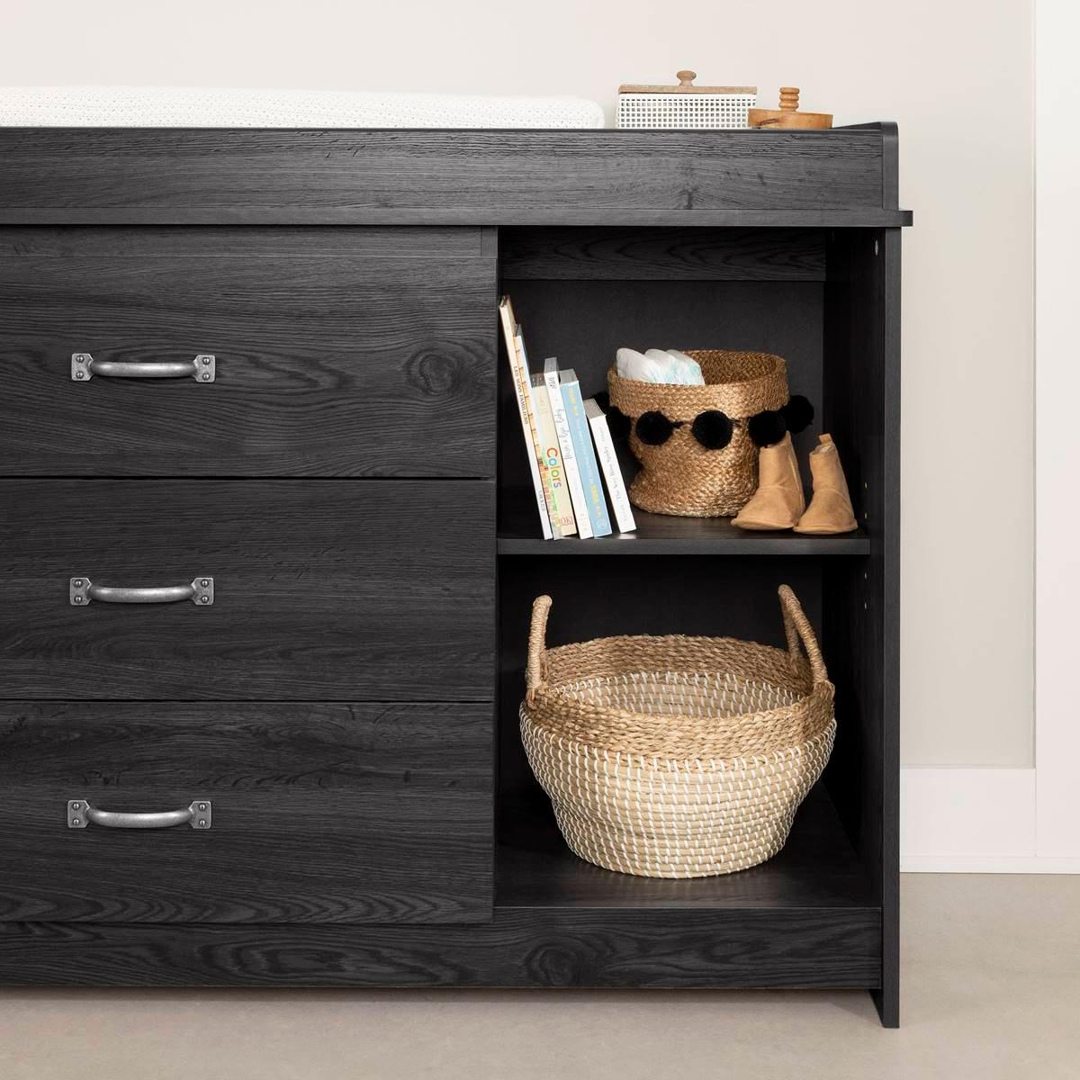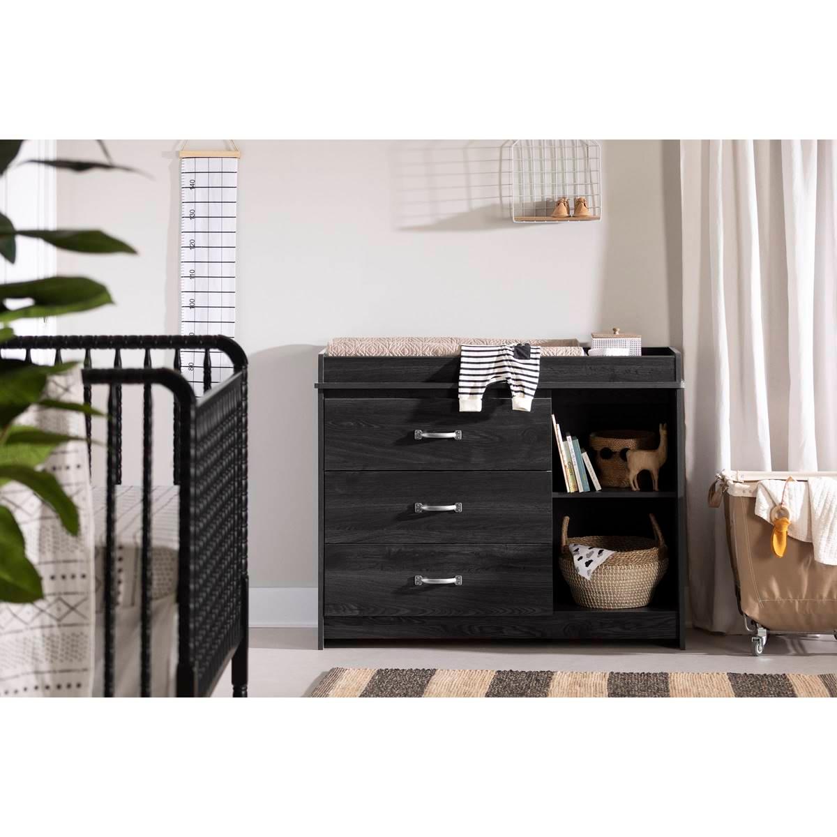 This South Shore Tassio changing table will add much sought after rustic look to your newborn´s room. Its metal handles are very trendy, and they’ll add a charming, natural, soothing style to your decor. This piece is packed with storage space. Three open spaces separated by two shelves (one adjustable) have been set up for the things you use often or want to keep close at hand, such as diapers. Pajamas, clothes, and blankets will find a home in one of the three large drawers.