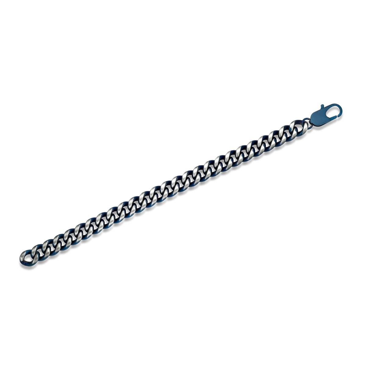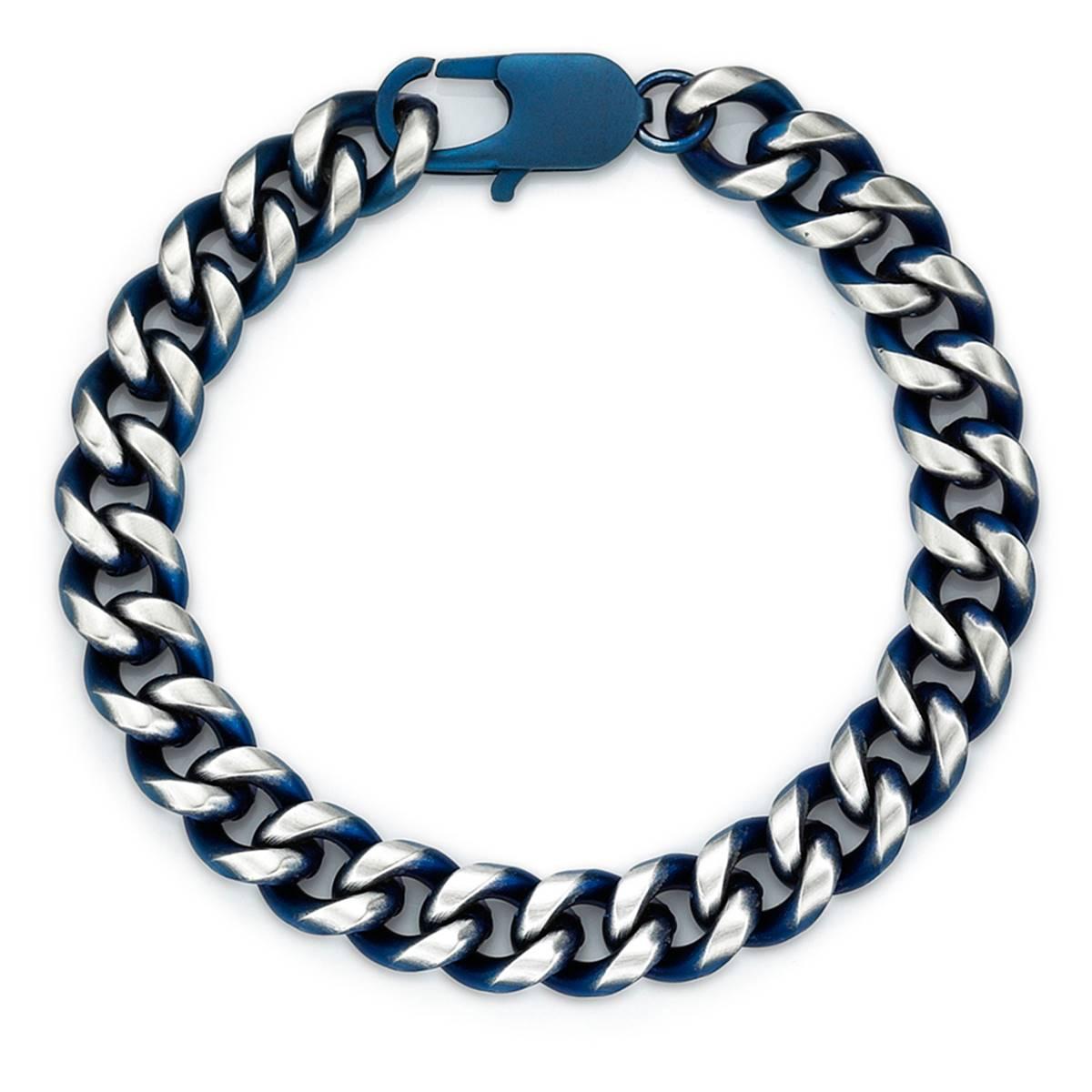 Description This distinctive Mens Lynx curb chain bracelet is set in stainless steel with blue ion-plating for a dashing contrast. The bracelet features a polished finished and...