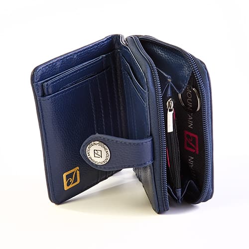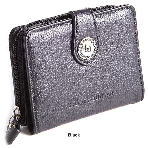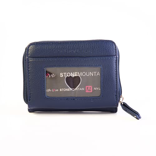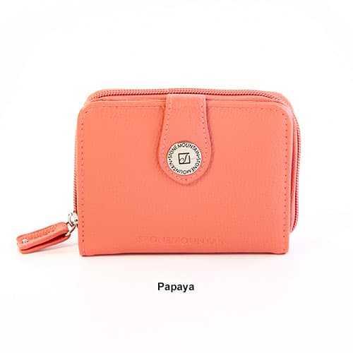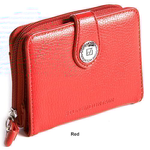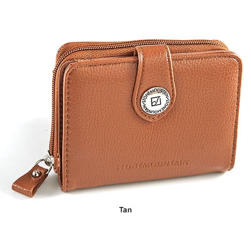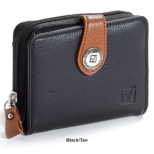 Description This Womens Stone Mountain Ludlow small zip around wallet features a smooth leather exterior with back ID slot. The front compartment has a snap entry, 1 billfold...