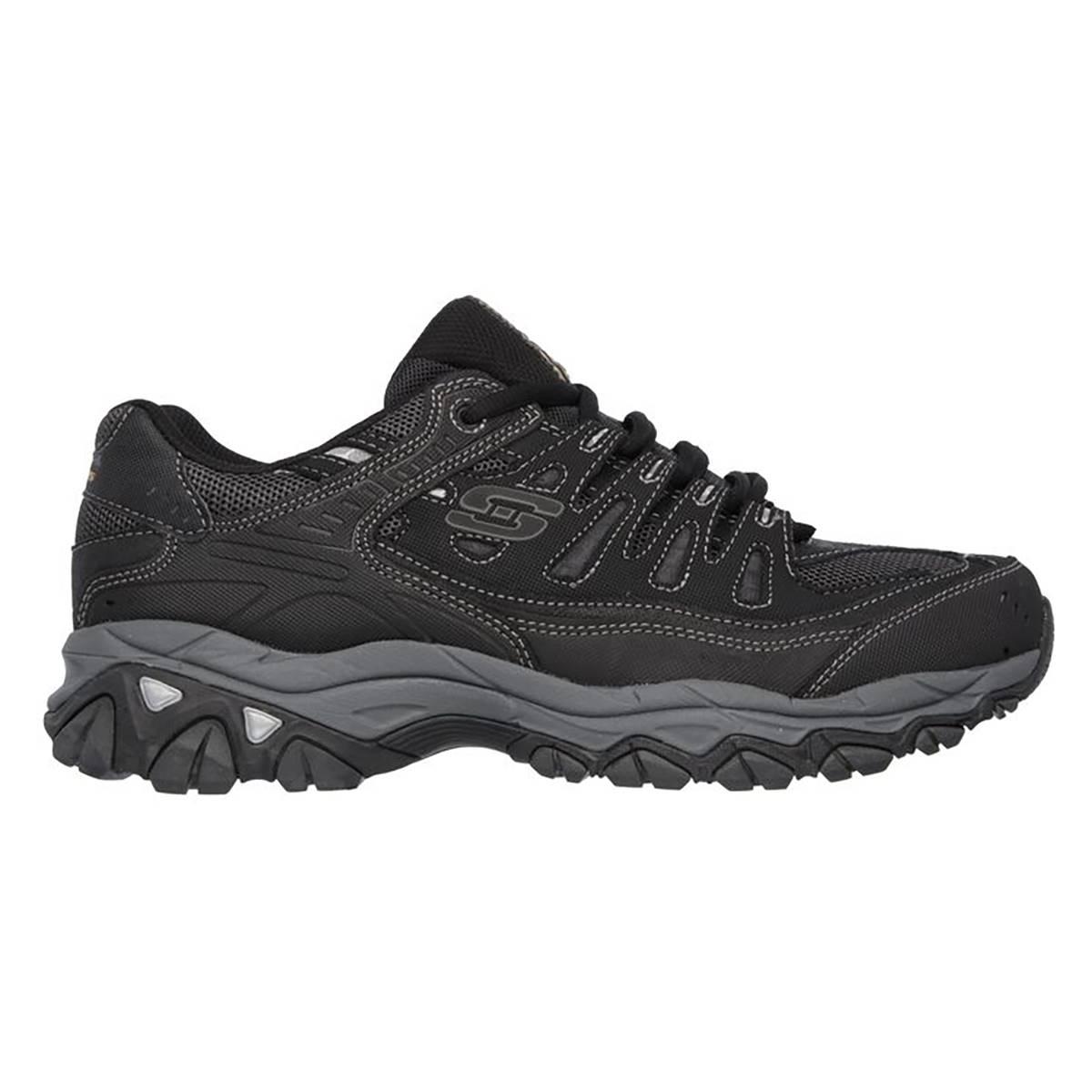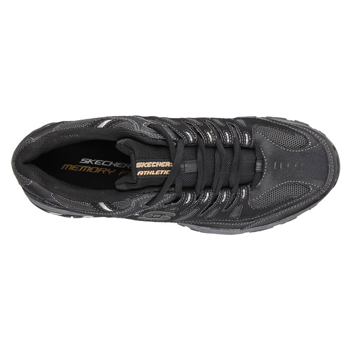 Description Mens Skechers Afterburn sneakers feature genuine leather and breathable mesh upper, a lace up closure, padded tongue/collar, a Skechers logo detail, soft fabric...