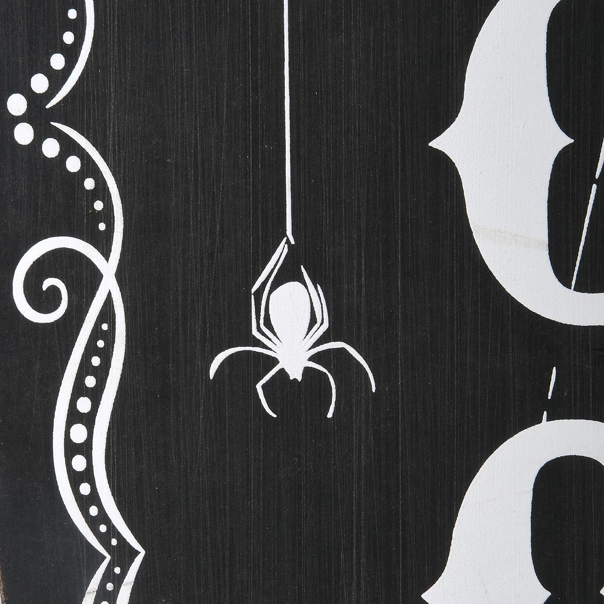 Welcome Halloween visitors, literally, with this National Tree 28-inch Halloween Welcome Standup Sign. Constructed of lightweight wood composite material, it is designed in the shape of a coffin featuring fancy scrollwork along the edges. A spider web with a dangling spider lies beneath the Welcome message written in a gothic text.