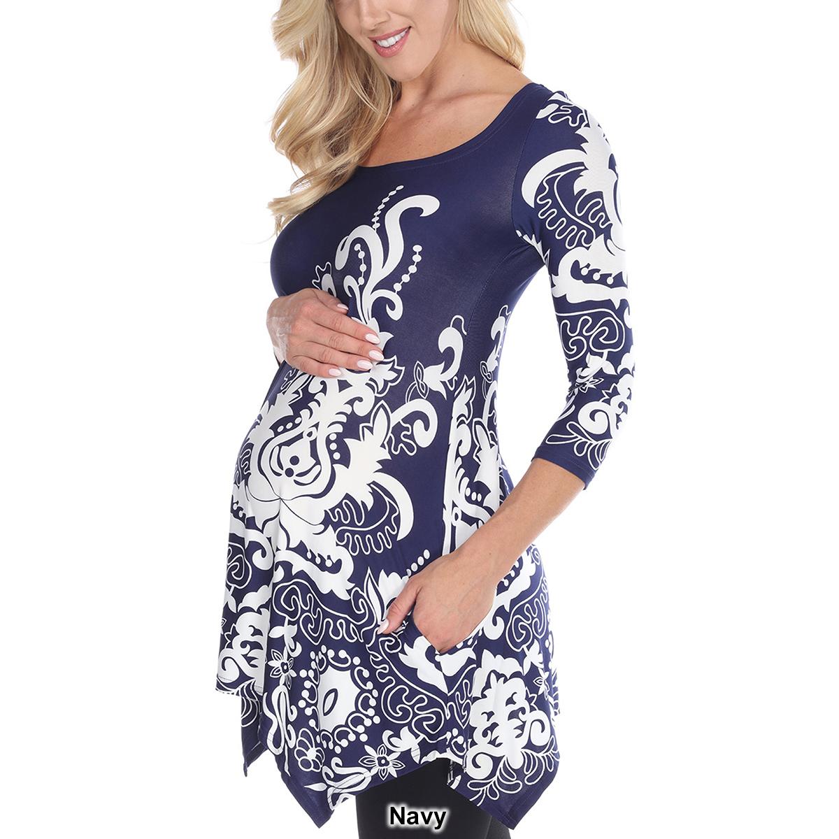 Description This flattering Womens White Mark Ganette paisley floral tunic maternity top drapes stunningly on your body. Featuring a bold, novelty print, and 3/4 sleeves with a...
