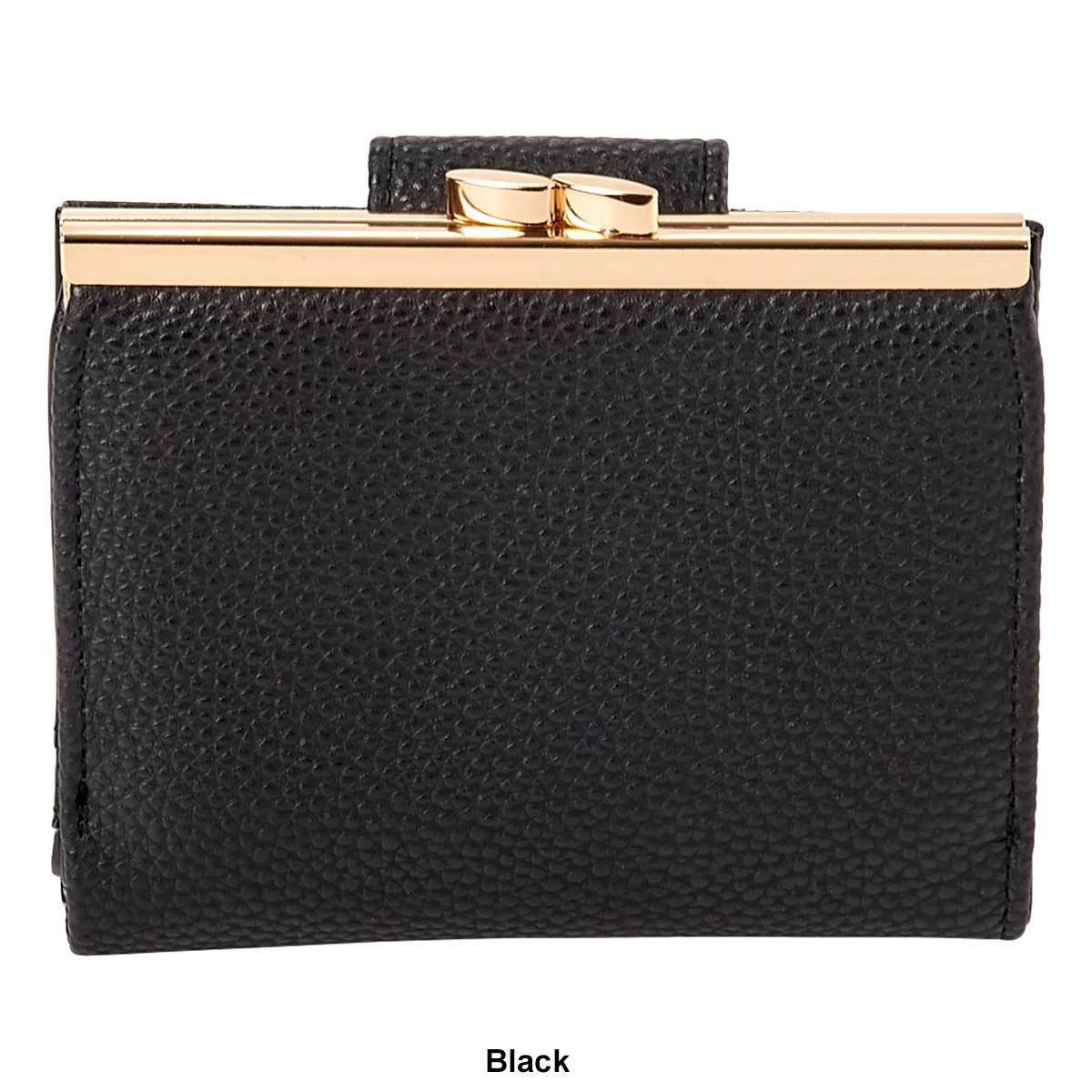 Description Store you cards and cash in style with the Womens Buxton Lexington wallet. This wallet features a kisslock closure compartment, double snap button closure, 15 credit...
