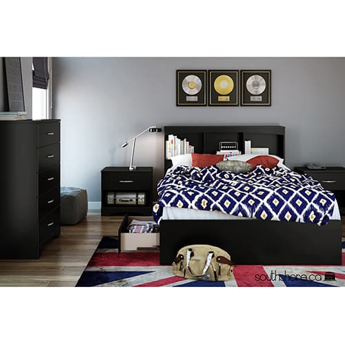 This South Shore Full Bookcase Pure Black Headboard from South Shore will bring a classic harmony to your bedroom. You’ll be happy to have three open spaces for storage – perfect for an alarm clock or box of tissues. This headboard features a hole in the back panel for easy wire management and rounded moulding. Measures: 40”H x 56”W x 8”D.