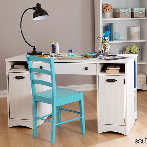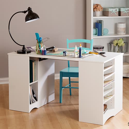 Description You’ll find this handy South Shore artwork craft table with storage to be truly inspiring! Whatever you’re into, crafts, sewing, or jewelry making - it’ll let...