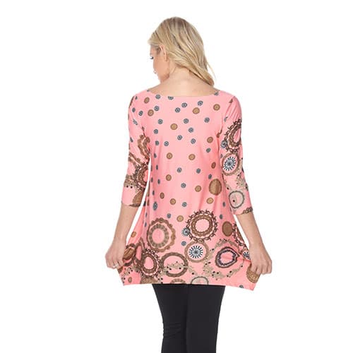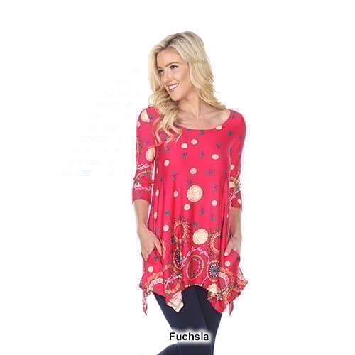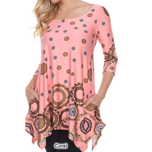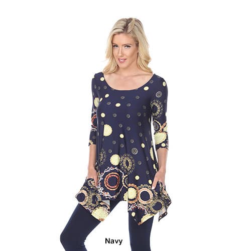 This Womens White Mark Erie tunic is flattering while draping stunningly over your body. It features a bold and flirty print with 3/4 length sleeves and a dashing scoop neckline.